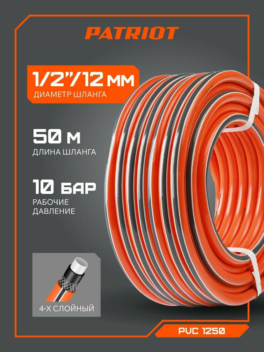 Шланг садовый Patriot PVC-1250 777001101 4 слоя 1/2 " 50 м
