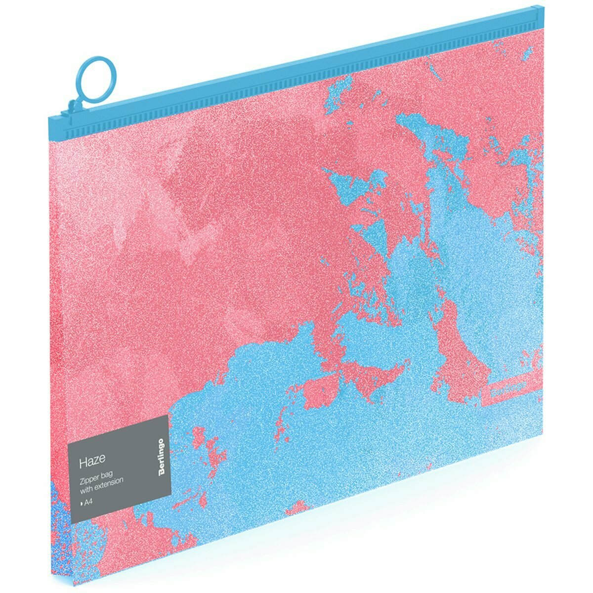 Папка-конверт на молнии с расширением Berlingo "Haze" А4 180мкм розовая/голубая с рисунком с эфф (ZGx_A4923)