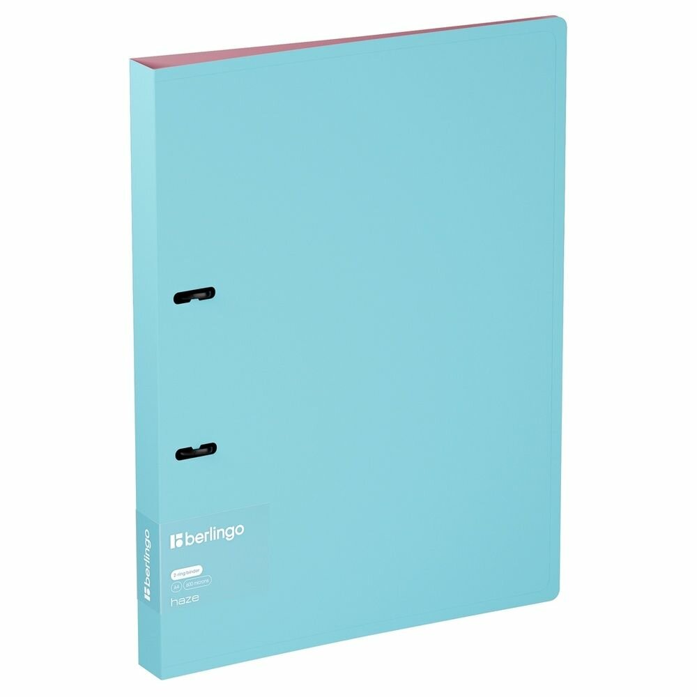Папка на 2 кольцах Berlingo "Haze" A4 24 мм 600 мкм D-кольца с внутр. карманом голубая софт-та (RB4_2D921)