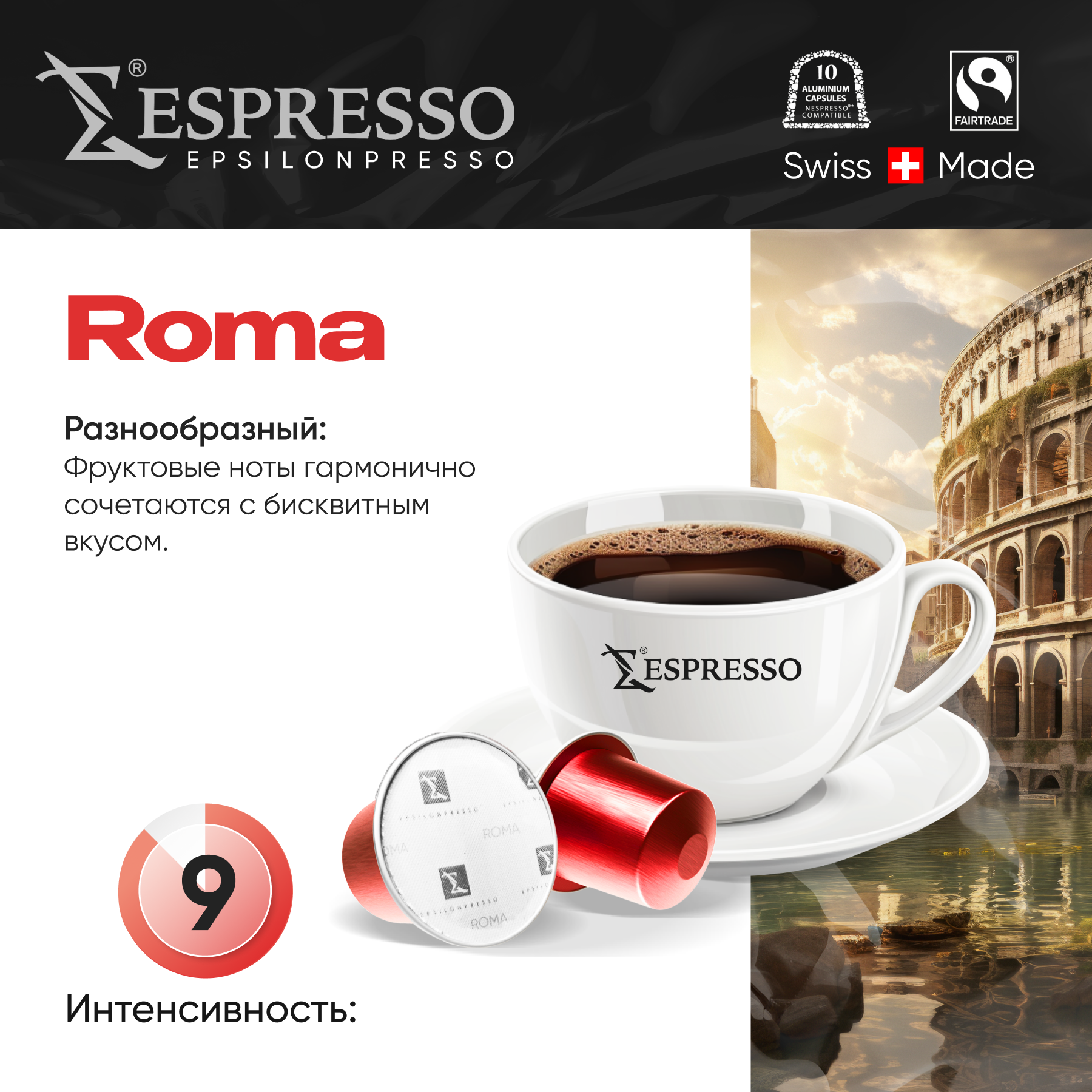 Откройте для себя истинное итальянское наслаждение с кофе в алюминиевых капсулах EPSILONPRESSO ESPRESSO ITALIANO.Интенсивно обжаренный кофе, украшенный фруктовыми ароматическими нотками и легкой кислинкой: Эспрессо отличается большой сложностью. Культовый кофе, который объясняет страсть итальянцев к этому напитку и его место, прочно укоренившееся в их повседневной жизни.В каждой капсуле скрыта интенсивная смесь высококачественной арабики, которая подарит вам незабываемый аромат и насыщенный вкус, найденный только в лучших итальянских эспрессо.Совместимый с кофемашинами системы Nespresso, этот продукт принесет в ваш дом атмосферу итальянских кафе. Капсулы герметично упакованы в алюминиевые корпуса, что гарантирует максимальное сохранение свежести и аромата кофе. Каждая упаковка содержит 10 капсул, идеальных для приготовления эспрессо, капучино, латте и американо.Бренд Epsilon Coffee гордится качеством своей продукции, начиная от тщательно отобранных кофейных зерен и заканчивая процессом их обжарки и упаковки. Наши капсулы идеально дополнят вашу коллекцию кофе в капсулах для кофемашин, и вы сможете наслаждаться разными вкусами и ароматами каждый день.Если вы поклонник кофе различных видов и хотите испытать что-то новое, наш кофе в капсулах набор станет идеальным дополнением для ваших утренних ритуалов или тихих вечеров. Изучите полный спектр вкусов, включая классический эспрессо, мягкий капучино, сливочный латте и даже варианты без кофеина для позднего вечера.Кроме того, благодаря алюминиевым капсулам, наш продукт является экологически осознанным выбором. Они легко перерабатываются, способствуя снижению вашего экологического следа.Приобретение кофе в капсулах EPSILONPRESSO ESPRESSO ITALIANO станет отличным выбором не только для личного использования, но и в качестве подарка. Подарите своим близким минуты наслаждения настоящим итальянским кофе.Ищете новые и интересные вкусы? Обратите внимание и на капсулы Dolce Gusto, Tassimo и Starbucks для разнообразия кофейных моментов и наслаждения каждым глотком. Конкурентоспособные цены и высочайшее качество делают наш продукт идеальным выбором для кофеманов с любыми предпочтениями.Закажите свой кофе в капсулах уже сегодня и окунитесь в мир истинного итальянского эспрессо с EPSILONPRESSO ESPRESSO ITALIANO.Подходит для использования с системами Nespresso, а также как альтернатива таким брендам, как Dolce Gusto ( Дольче Густо ), Tassimo ( Тассимо ) , LOR, Jardin ( Жардин ), Starbucks ( Старбакс ) и другим.
