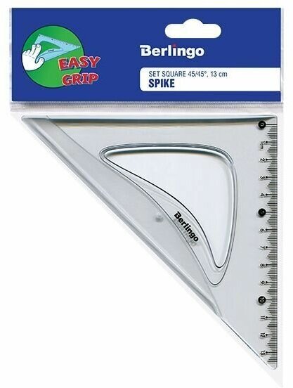 Треугольник пластиковый, 45°, 13 см, безопасные закругленные края, высококачественная градуировка с использованием УФ-чернил.