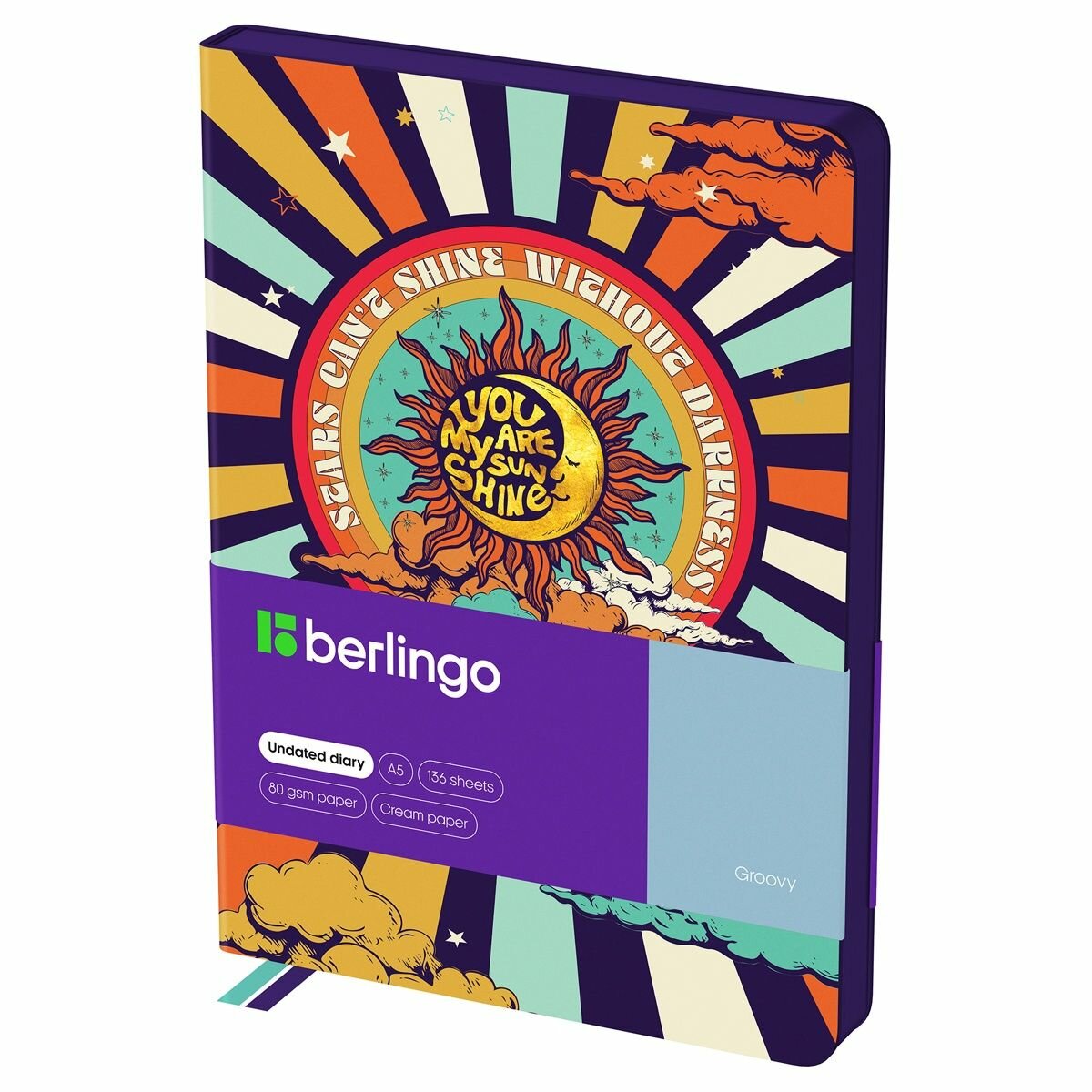 Ежедневник недатированный кожзам Berlingo "Groovy" А5 136 л фиолетовый срез с рисунком (UD2_01S15)