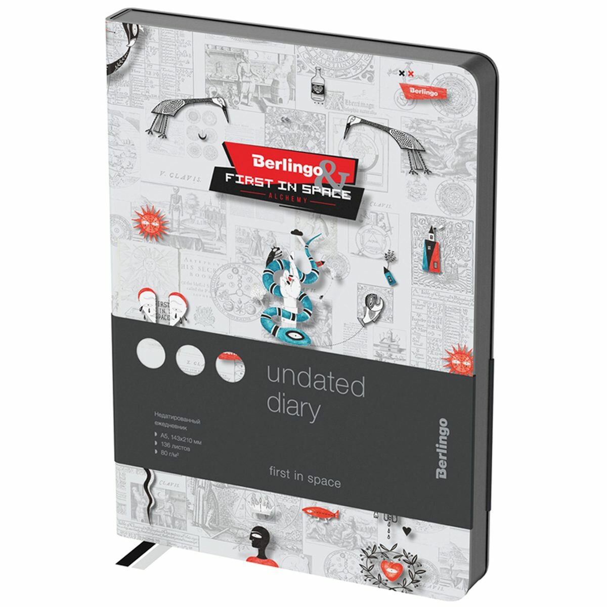 Ежедневник недатированный кожзам Berlingo "First in Space" А5 136 л черный срез с рисунком (UD2_01001)