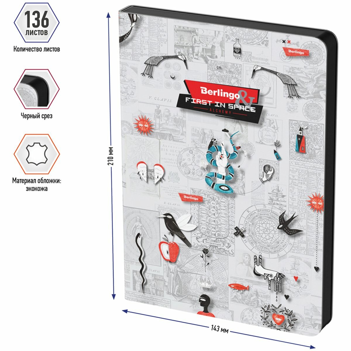 Стильный недатированный ежедневник Berlingo First in Space формата A5 с черным контрастным срезом и ультрамягкой обложкой из высококачественной экокожи. Яркий дизайн в коллаборации с модным брендом одежды First in Space. Внутренний блок состоит из 136 листов высококачественной кремовой бумаги повышенной плотности 80 г/м² с пантонной печатью в 2 краски. Представлен в размере 143 на 210 мм.