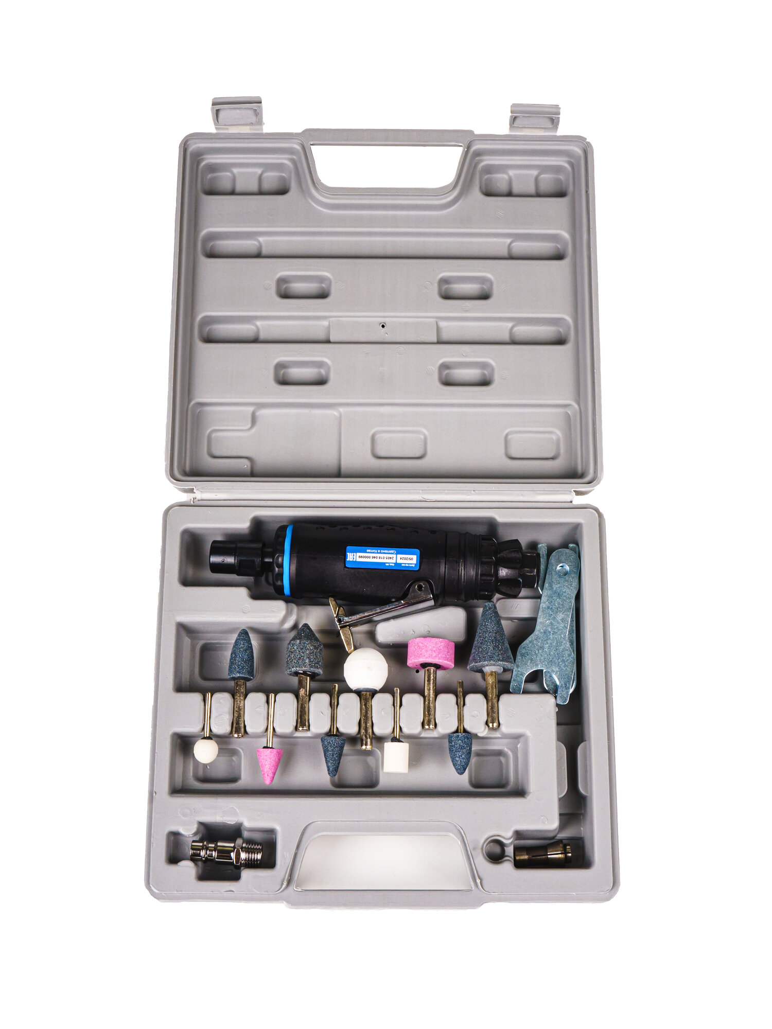 - Кейс и набор насадок в комплекте - комплекте идут набор насадок и дополнительная цанга, а также удобный кейс
