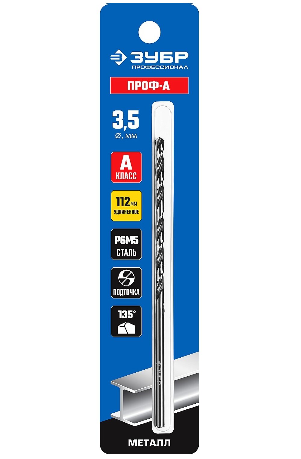 ЗУБР ПРОФ-А 3.5 х 112 мм сталь Р6М5 класс А удлиненное сверло по металлу Профессионал (29624-3.5)