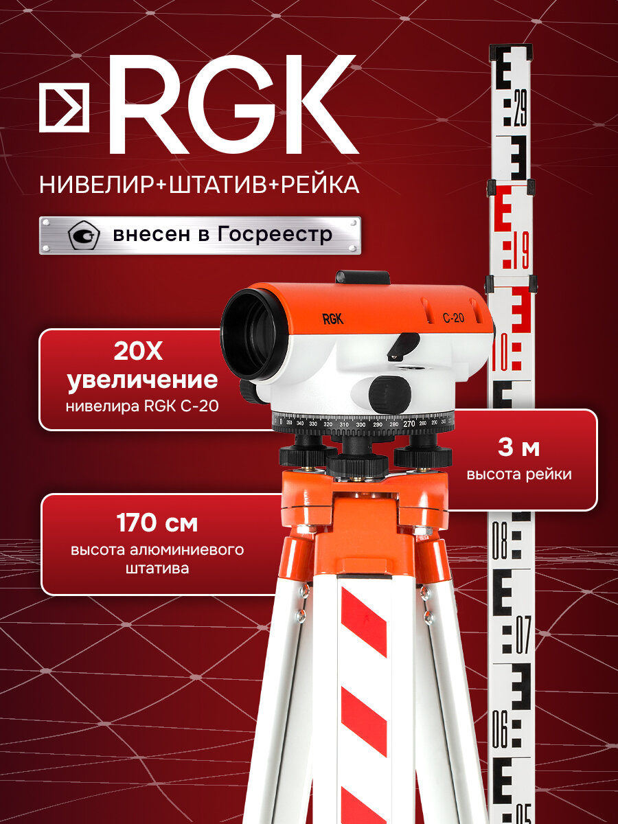 Комплект оптический нивелир RGK C-20 + S6-N +S3 (778220)