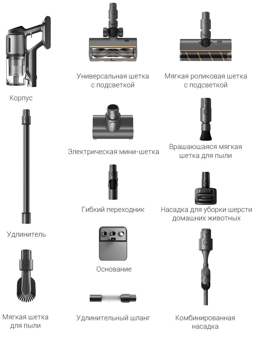 | Насадки | Пол/ковер,Турбощетка,Для мягкой мебели,Насадка-щетка,Щелевая,Корпусная,Электрощетка,Мини-электрощетка,Мини турбощетка,Гибкая насадка |