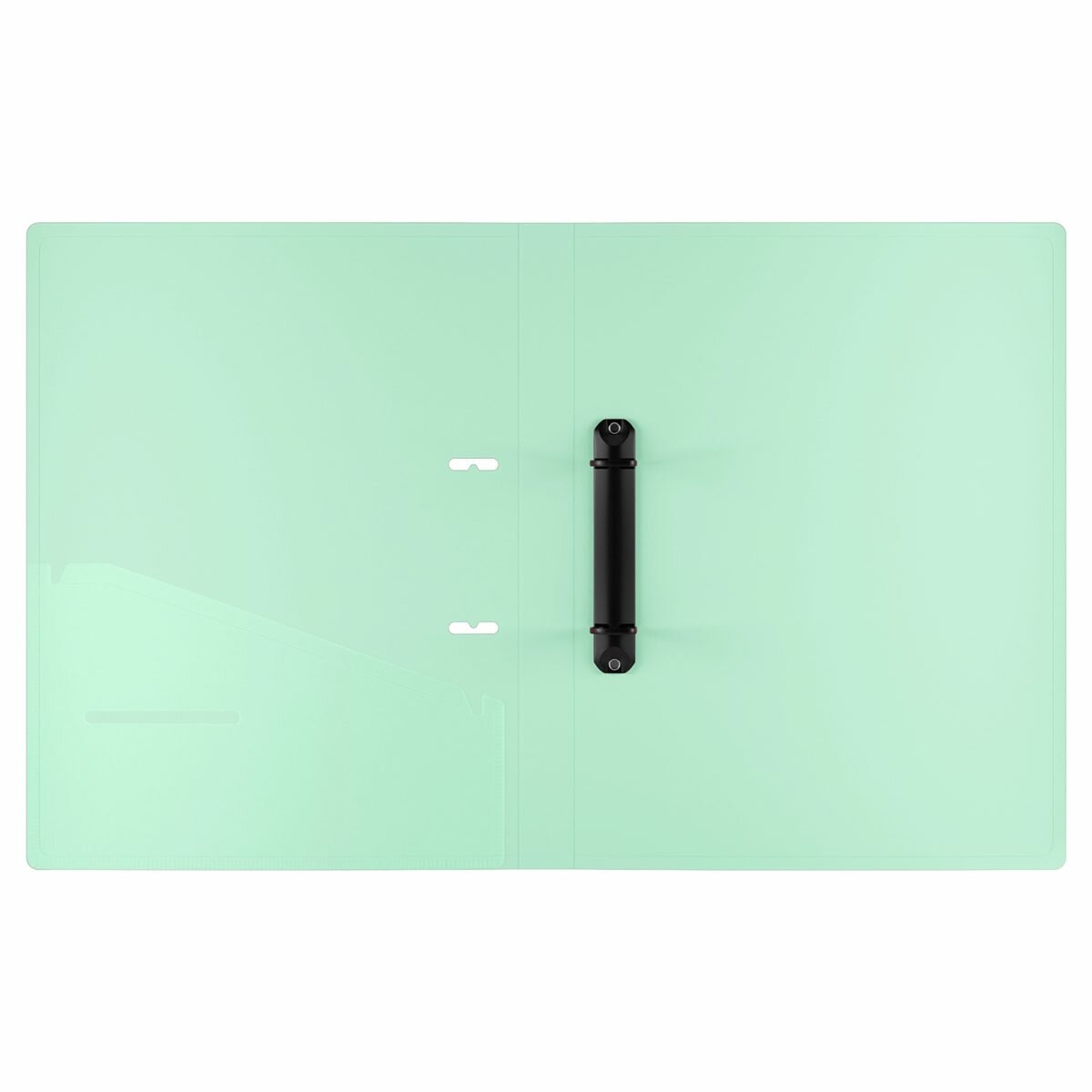 Вместимость папки – 150 листов, ширина корешка – 24 мм. Кольцевой механизм с 2 кольцами диаметром 20 мм надежно держит перфорированные документы и документы, помещенные в файлы-вкладыши. Специальная D-форма колец помогает удобно и ровно хранить документы, которые могут быть выровнены по левому краю, благодаря боковой вертикальной стенке кольца. Специальные формовые отверстия в обложке служат для надёжного защелкивания папки в сложенном виде, предотвращают случайное открытие обложки и замятие документов внутри при хранении и транспортировке.