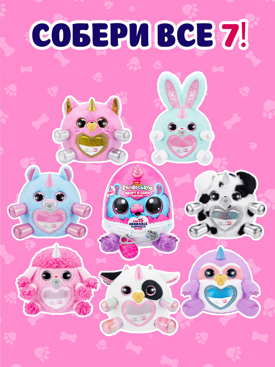 Adopt-A-Corns - это действительно удивительная идея игрового набора, которая позволит вам усыновить собственного милого Рейнбокорна! Представьте, как маленькие милые создания ползают по Рейнбовиллю, и вы можете стать их заботливым хозяином. Развлекайте своего Adopt-A-Corn и позаботьтесь о нем, застегните подгузник и подарите ему уютное место для отдыха. И конечно же, не забудьте про соску, ведь она так важна для малыша! С 7 различными плюшевыми игрушками Adopt-A-Corns в коллекции у вас будет масса возможностей для усыновления новых друзей. Открывайте каждое яйцо и наслаждайтесь более чем 15 очаровательными сюрпризами внутри. Пусть ваш дом наполнится радостью и весельем с этой игрушкой для девочек! В комплекте: 1 плюшевая игрушка Adopt-A-Corn, 1 булавка, 1 яйцо для хранения подгузников, 1 соска, 1 сертификат об усыновлении, 10 наклеек, 1 сердце 1 руководство для коллекционеров.внимание! В серии 7 видов питомцев, игрушка-сюрприз поставляется в закрытой непрозрачной упаковке, заранее предугадать какой из вариантов попадется невозможно.
