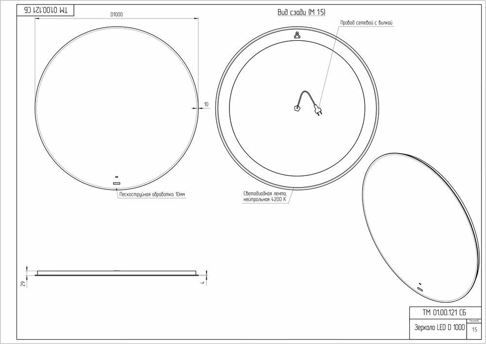 | Оснащение | подсветка, крепления |
