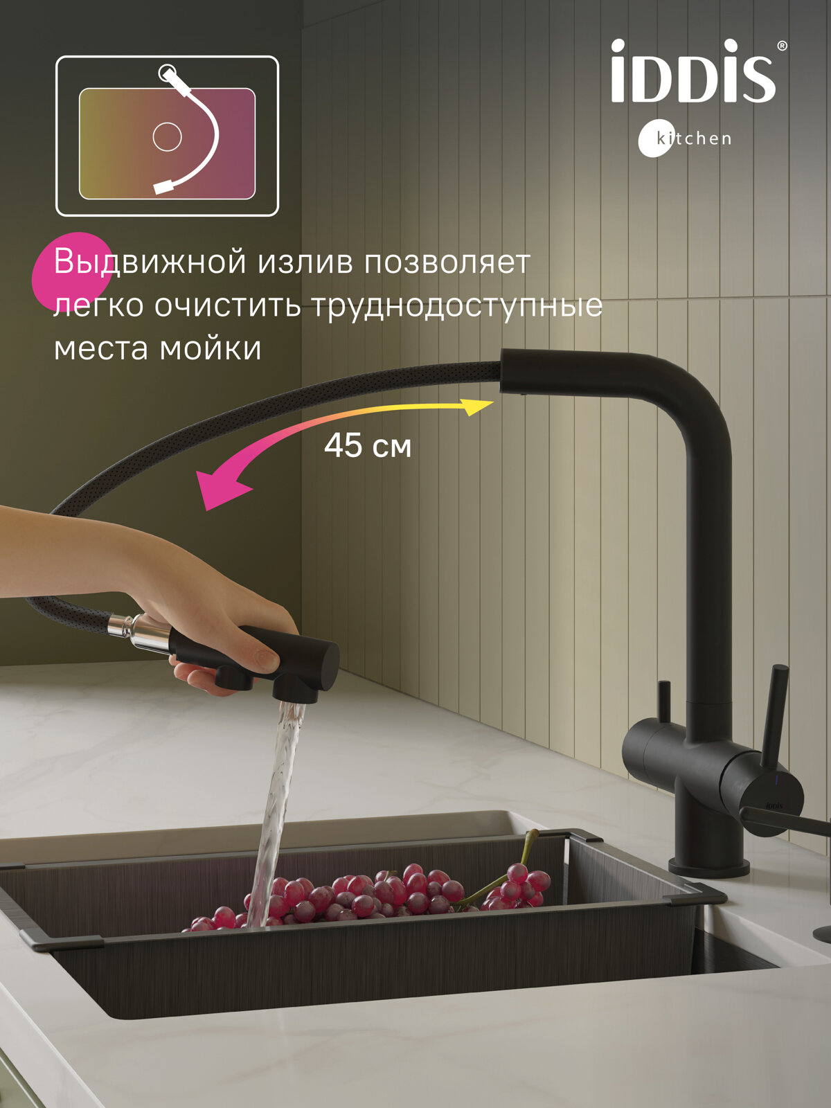 Смеситель для кухни Iddis Umbra с подключением к фильтру черный матовый UMBBLPFi05