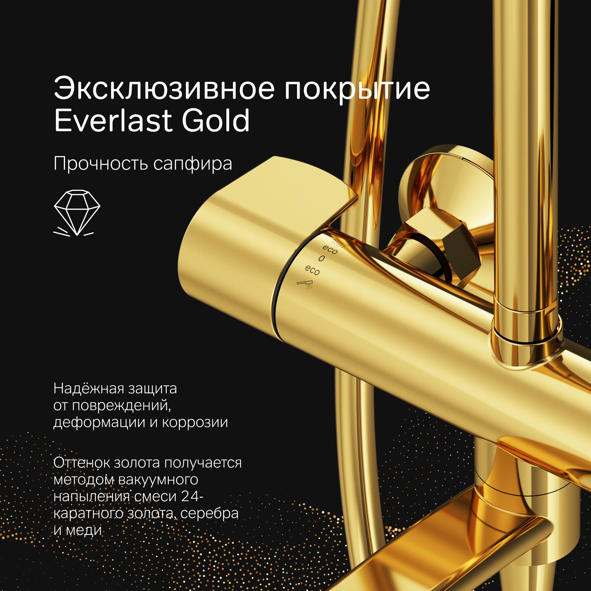 Новое прочтение культовой коллекции X-Joy. Еще больше инновационных решений для вашей ванной комнаты. Трендовые формы, технологичные материалы и продуманные детали, которые теперь доступны каждому. По самой привлекательной цене. Настоящее произведение ювелирного искусства в вашей ванной комнате: нежный оттенок розового золота получается методом вакуумного напыления смеси 24-каратного золота, серебра и меди, в процессе которого микрочастицы сплава образуют стойкое соединений с латунной основой. Благодаря специально спроектированной эргономичной ручке вы можете управлять душевой системой даже с мыльными руками. Термостатический картридж с высокочувствительным термоэлементом и быстрой реакцией на изменения температуры или давления надежно защищает от ожога даже при внезапном отключении холодной воды.