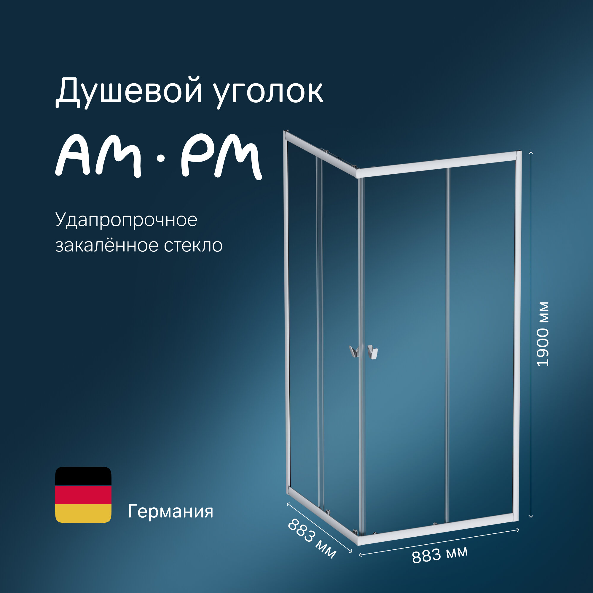 Душевой уголок Am.Pm Sunny 100х100х190 см профиль хром матовый стекло прозрачное W87G-403-100100-MT