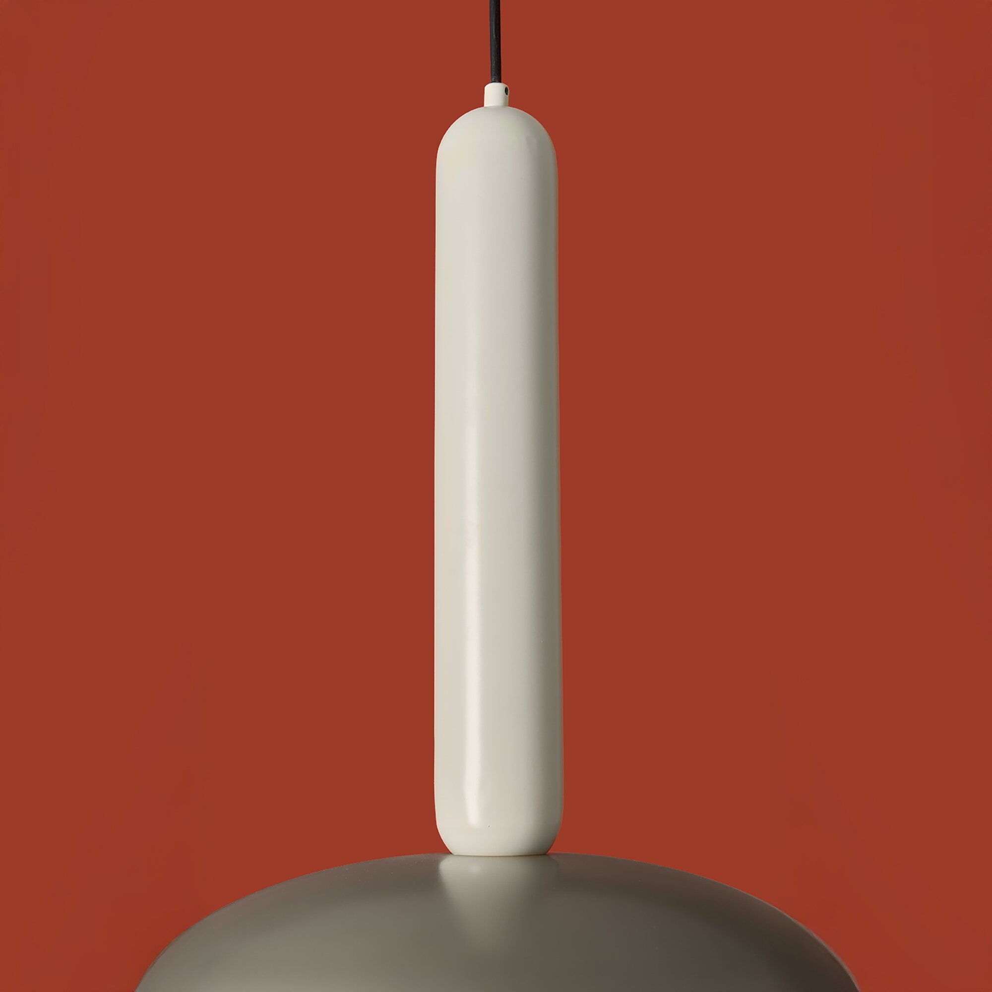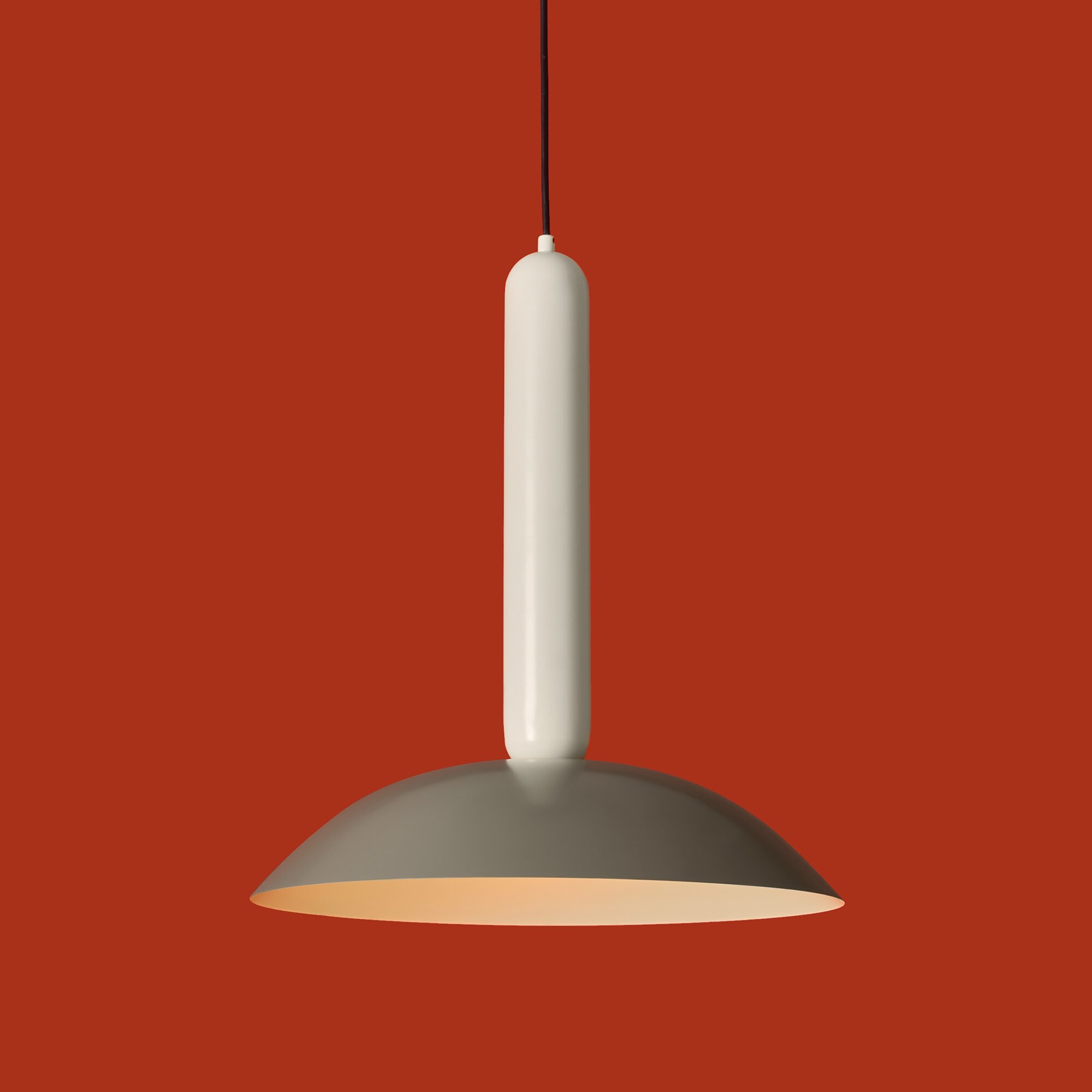 Материал арматуры — металл, цвет — черный. Каждый подвеской светильник окрашен в 2 цвета: серо-бежевый (RAL 1019 ) и жемчужно-белый (RAL 1013), Каменно-серый (7030) и Белый (9010), Белый (9010) и Каменно-серый (7030). Необычный плафон-купол небольшой высоты дополнен подвесом цилиндрической формы. Подходит для современных интерьеров: лофт, джапанди и минимализм. Номер Ral носит рекомендательный характер.