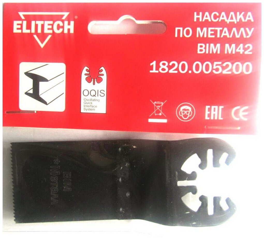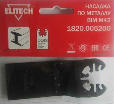 | Прочие особенности и свойства | НасадкаElitech 1820.005200 подходит для использования с многофункциональными инструментами. Применяется с целью распила металлических заготовок, за исключением закаленных саморезов и твердосплавных металлов. |