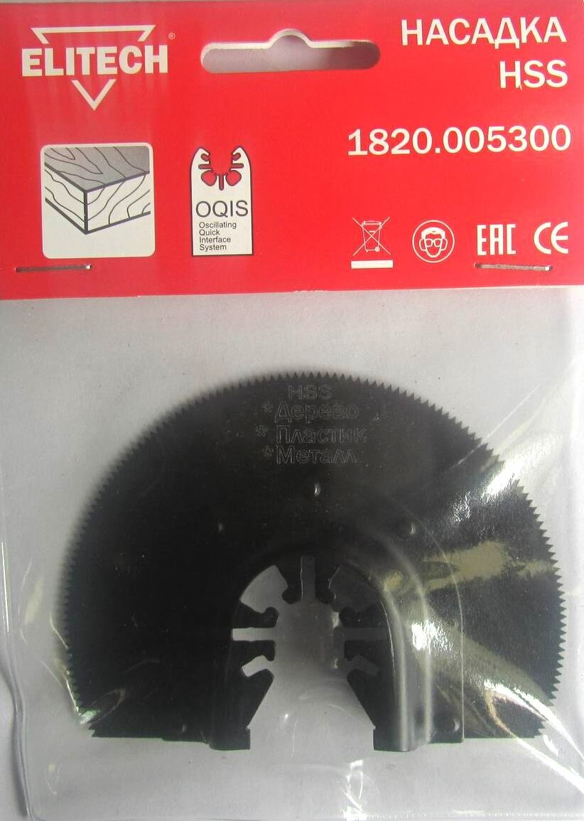 | Прочие особенности и свойства | НасадкаElitech 1820.005300 используется совместно с многофункциональными инструментами для распила древесины и пластика. |