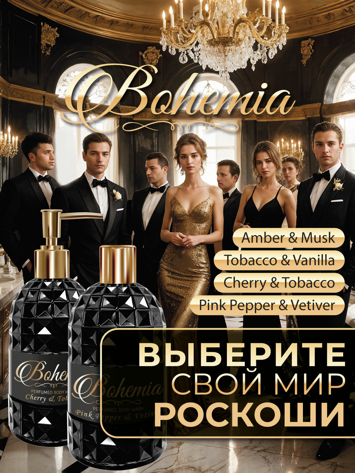 Погрузитесь в мир изысканных ароматов и нежного ухода с коллекцией парфюмированных гелей для душа BOHEMIA. Эта уникальная серия сочетает в себе роскошь и утончённость, предлагая вам не просто гель для душа, а настоящий ритуал наслаждения. Каждый флакон оформлен в стильном минималистичном дизайне, который станет украшением вашей ванной комнаты.Уникальные ароматыВдохновленная богатством восточной культуры, коллекция BOHEMIA предлагает ароматы, которые подойдут как для неё, так и для него.Один из вариантов — гель для душа с нотами вишни и табака. Это уникальное сочетание создает атмосферу тепла и уюта, расслабляя и погружая вас в мир спокойствия. Каждое принятие душа становится настоящим ритуалом, позволяющим забыть о повседневной суете и насладиться моментом.Высококачественные ингредиентыМы заботимся о вашем комфорте и здоровье кожи, поэтому используем только высококачественные ингредиенты:• Экстракт зеленого кофе подтягивает и тонизирует кожу, предотвращая признаки целлюлита.• Экстракт алоэ обладает противовоспалительными и регенерирующими свойствами, поддерживая оптимальный уровень увлажненности и успокаивая кожу.• Комплекс аминокислот способствует восстановлению клеток кожи, ускоряя процессы заживления и обновления, а также участвует в синтезе коллагена и эластина.• Молочная кислота — альфа-гидроксикислота (AHA), которая эффективно эксфолирует кожу, улучшая её текстуру и даря свежий вид.• Пантенол увлажняет и смягчает кожу, способствуя её быстрому заживлению.• Бетаин поддерживает оптимальный уровень pH кожи, защищает от свободных радикалов и замедляет процессы старения.Приглашаем вас открыть для себя мир роскоши с коллекцией парфюмированных гелей для душа Богемия. Средство станет отличным новогодним подарком, как для мужчины, так и для женщины. С коллекцией BOHEMIA ваше утро начнется с аромата роскоши, а вечер станет временем для расслабления и восстановления.