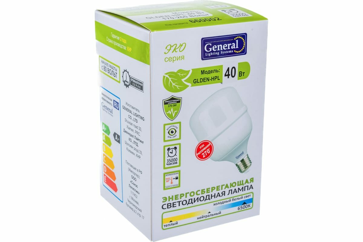 Лампа высокомощная General Glden-hpl-40-230-e27-6500