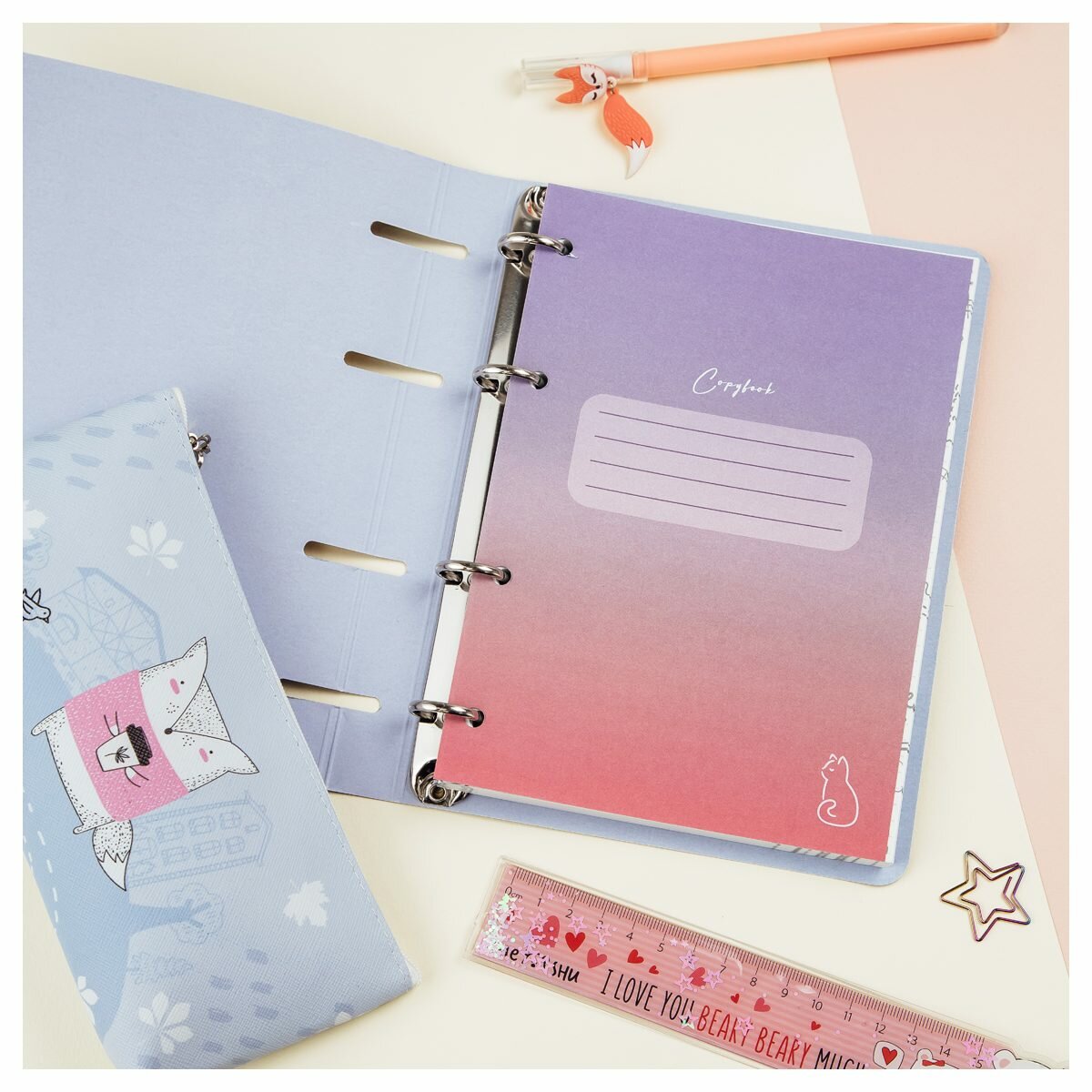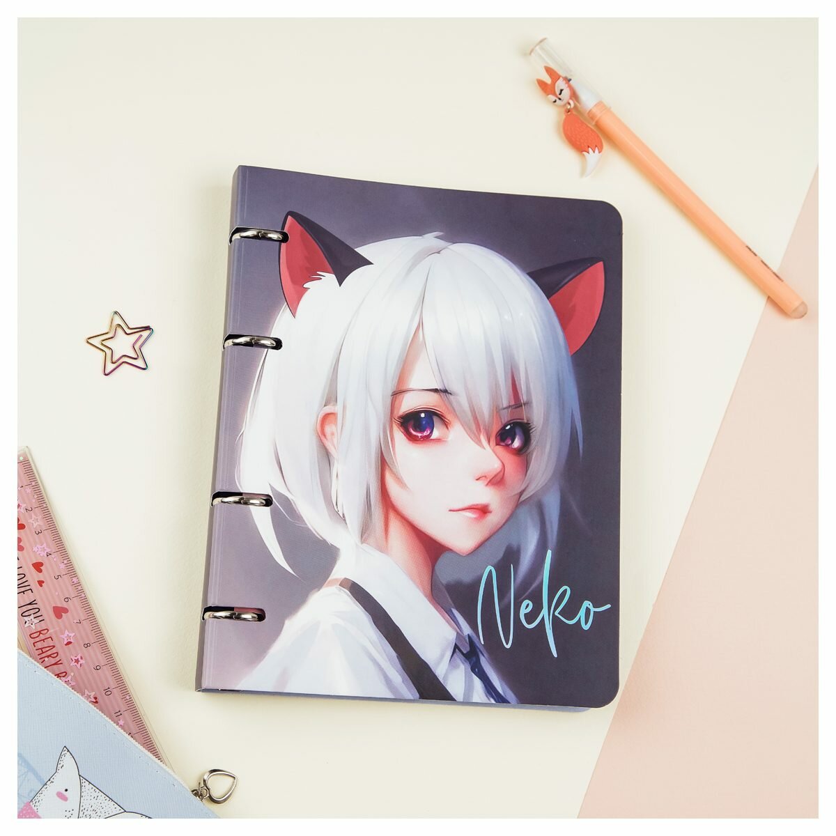 Тетрадь на кольцах MESHU "Neko" А5 100 л картон матовая ламинация тиснение фольгой (MS_50667)