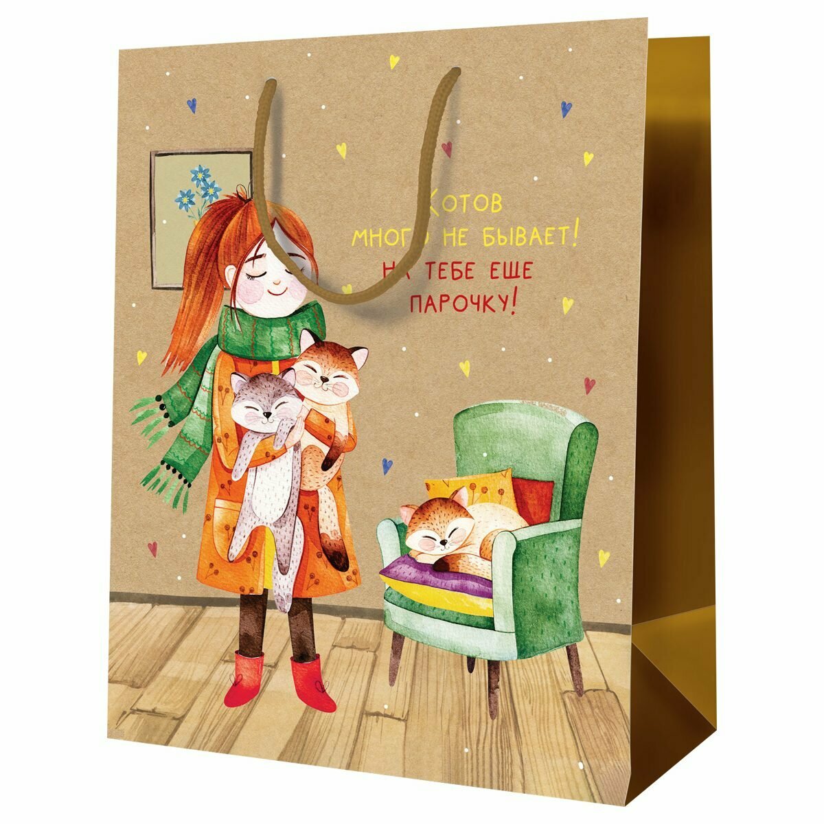 Пакет подарочный MESHU "Котов много не бывает" 18*23*10 см крафт (MS_52231)