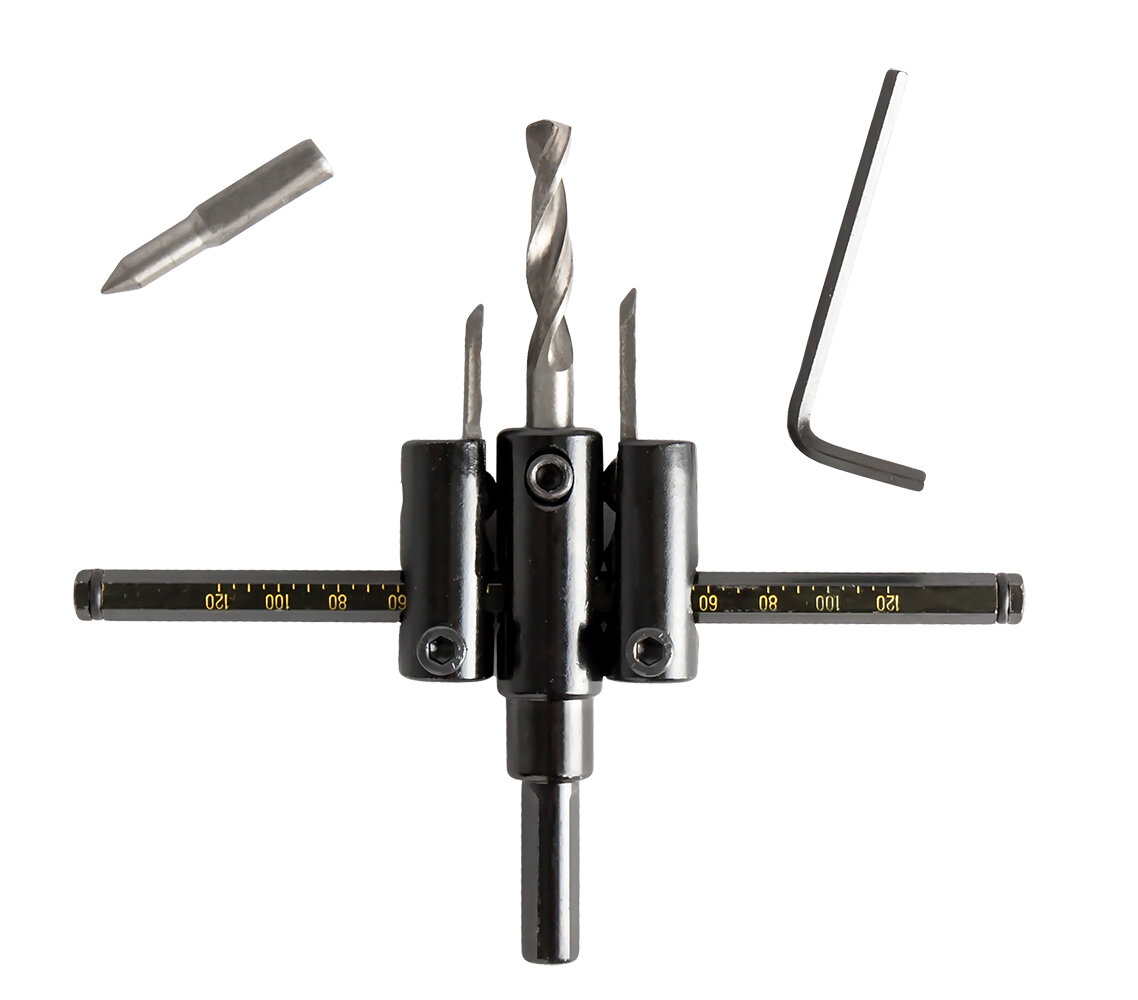 Регулируемое сверло по дереву ''балеринка''. Предназначено для сверления сквозных отверстий в мягкой древесине и древесине средней твердости. Подойдт для всех видов ГКЛ, ДСП, ОСБ, ЦСП и пр. листовых материалов. Незаменимая вещь при высверливании отврстий под вентиляцию, сантехнические трубы и электророзетки.