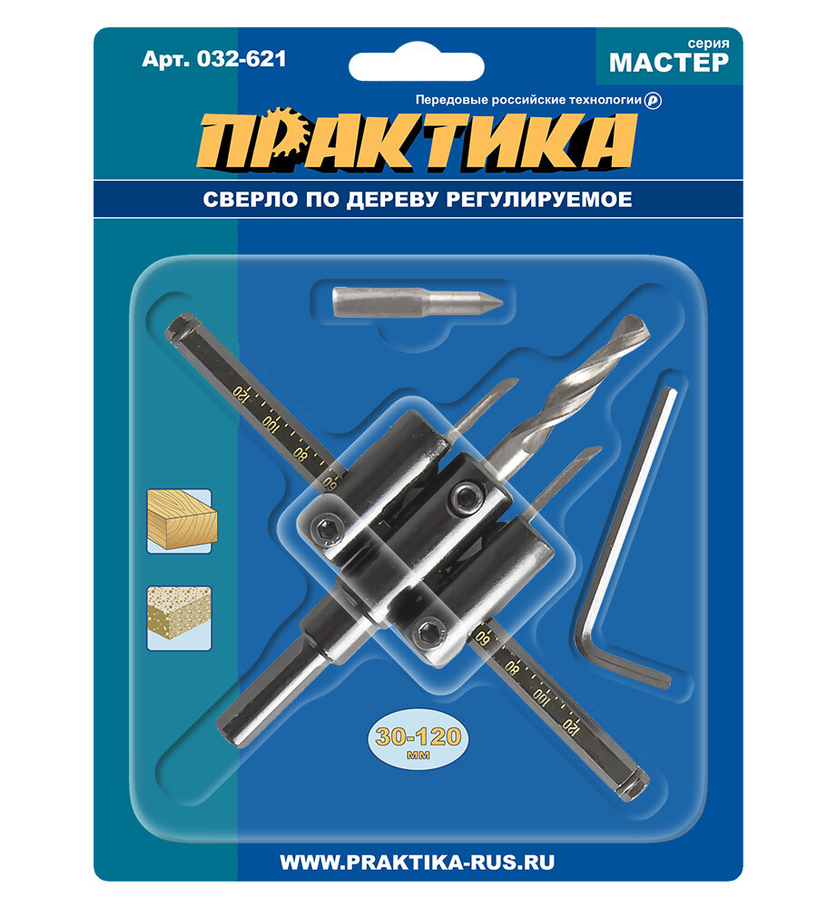 Сверла по дереву ПРАКТИКА 032-621 по дереву регулируемое 30-120мм