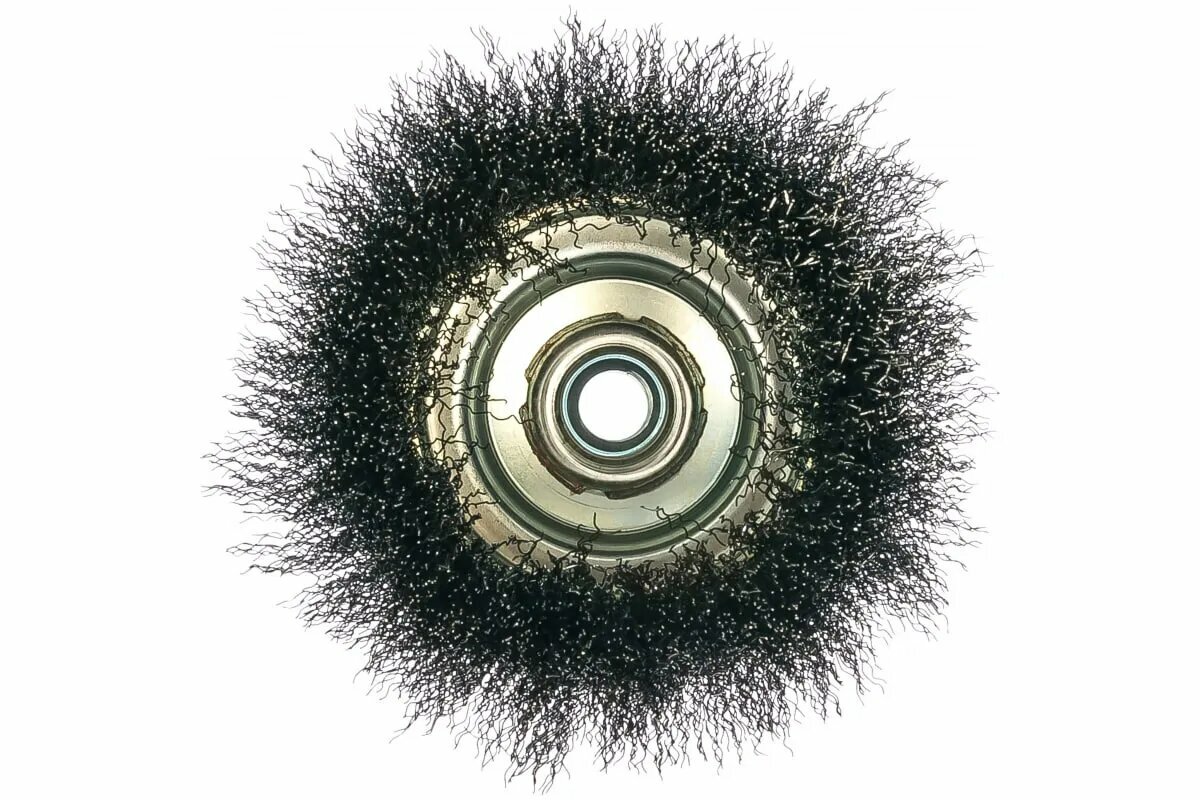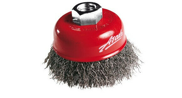 Щетки ТМ Атака изготовлены на высокотехнологичном европейском оборудовании, по стандартам профессионального инструмента.Плотный, однородный ворс щетины, без пустых мест - отличный результат зачистки.Точная центровка щетки – нет биения при работе, нагрузки на руки и инструмент.Надежное крепление ворса к телу щетки – щетина не разлетается при работе.Щетка чашеобразная, нержавеющая гофрированная проволока.Щетка с гофрированной жесткой пружинной проволокой .Применяется для зачистки и выравнивания больших площадей, угловых, радиусных поверхностей, для подготовки металлических и деревянных поверхностей к покраске, удаления ржавчины, старой краски, окалины, заусениц, загрязнений.Предназначена для работы с угло-шлифовальными машинами. Посадка под шпиндель M14*2Характеристики:Стальная гофрированная проволока;Диаметр щетки: 125мм;Посадочный размер: M14;Диаметр проволоки: 0,3мм;Высота рабочей части: 34мм;Размеры: 125*125 (мм);Масса: 530гр;Китай - страна производства;Россия - страна родина бренда.