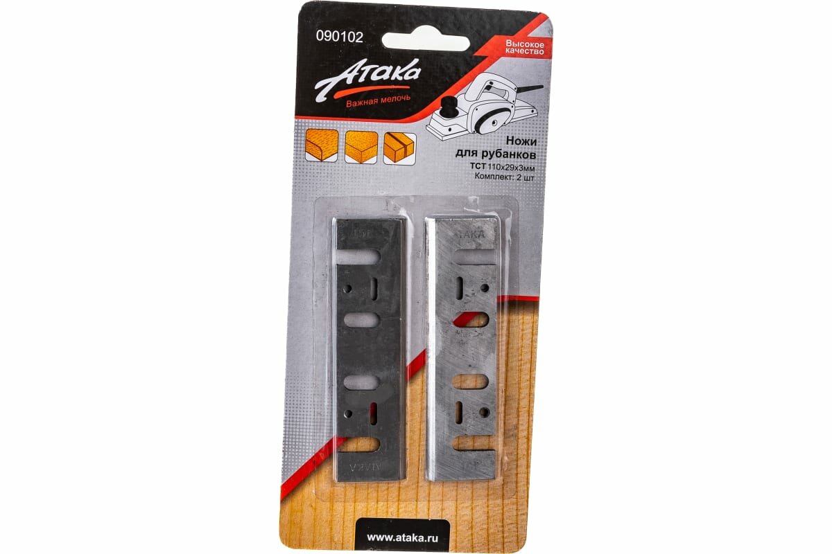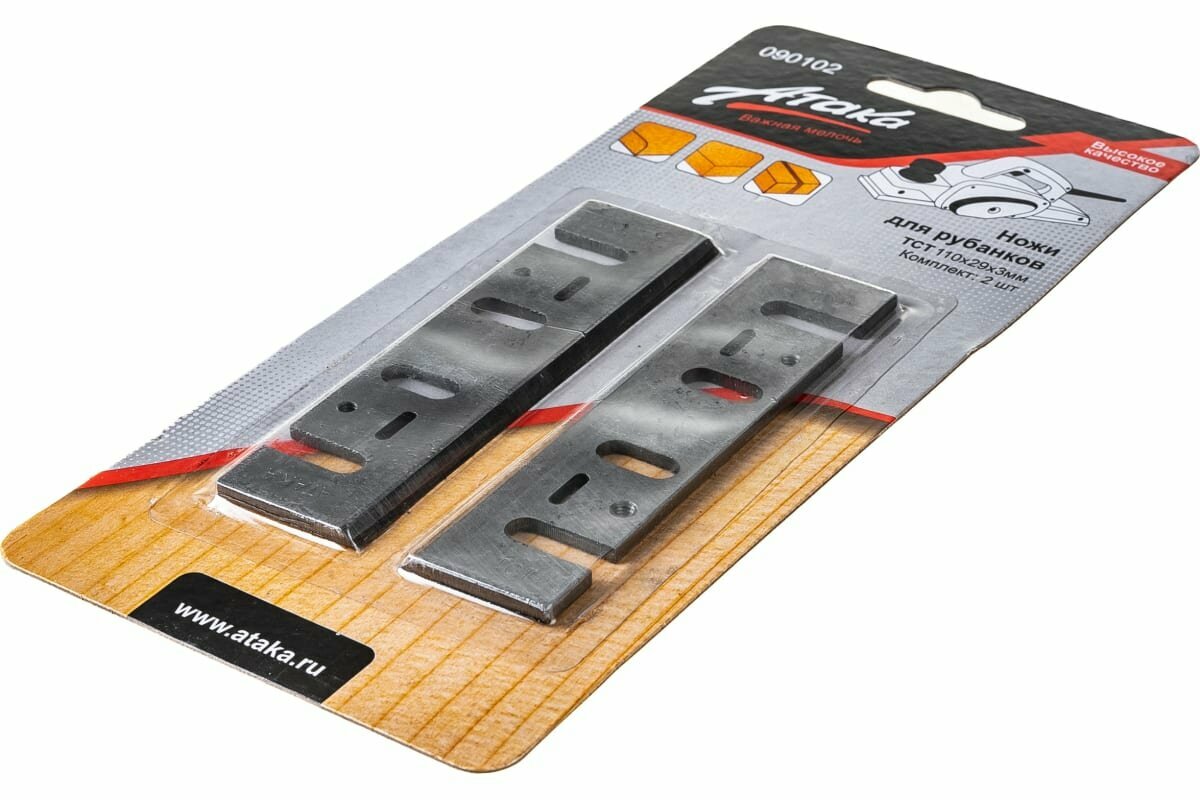 Ножи атака подходят для большинства моделей рубанков. Оснастка изготовлена из твердого сплава ТСТ, допускается многократная заточка лезвия. Ножи обеспечивают ровную поверхность обрабатываемого дерева даже при работе с твердыми породами.
