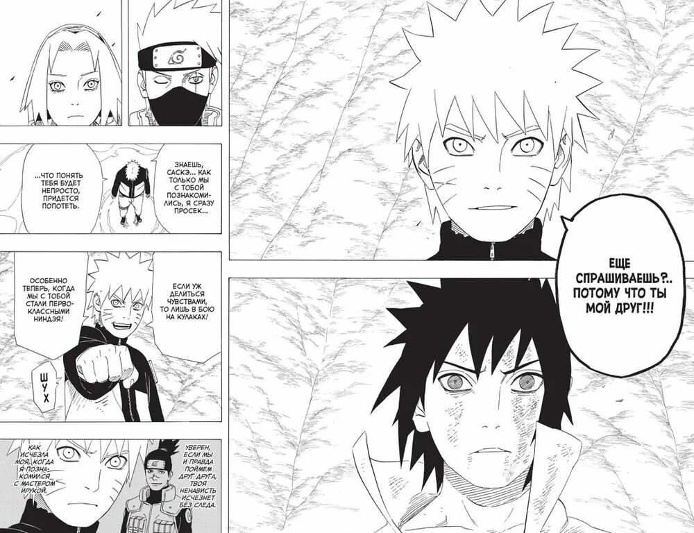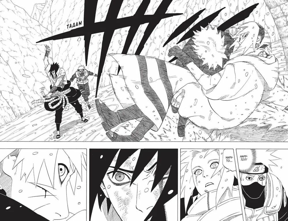 Саскэ, Сакура и Наруто наконец встретились лицом лицу. Когда-то лучшие друзья, талантливые синоби из команды номер семь, – молодые люди уже давно не могут найти общий язык. Саскэ пошел по темному пути и хочет уничтожить всех жителей Листвы, включая бывших товарищей. И все же Наруто не намерен отказываться от друга, пусть даже исходом схватки один на один может стать смерть обоих. Молодой ниндзя решает в очередной раз поговорить с Саскэ, но Мадара прерывает их беседу. Саскэ возвращается в логово «Рассвета», а Наруто отправляется на остров, где когда-то тренировался Киллер Би, чтобы познать своих внутренних демонов