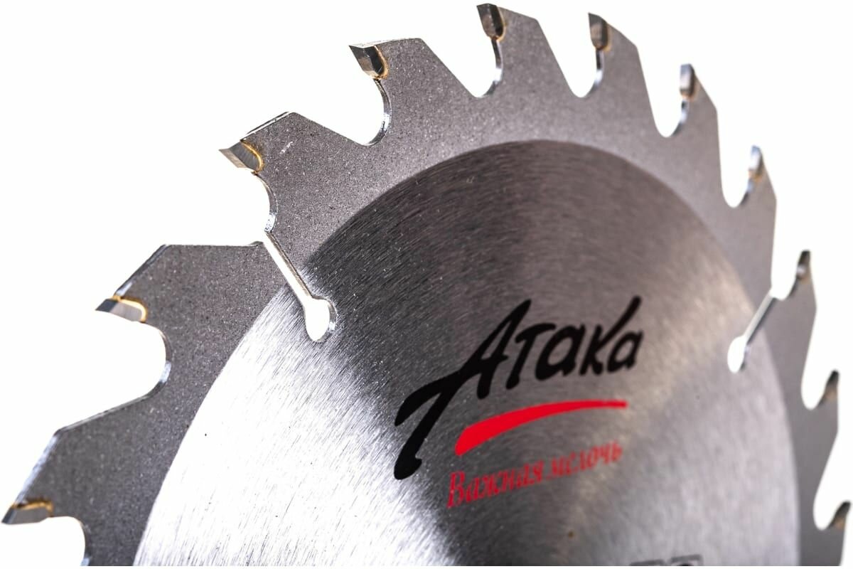 Пильный диск Атака предназначен для выполнения профессиональных задач с древесиной. Его отличает повышенный ресурс, и как следствие, возможность точного подбора под любые задачи и условия работы. Форма* и размер зубьев данного диска наиболее оптимально подходит для обеспечения быстрого продольно-поперечного реза с достаточно шероховатой кромкой.