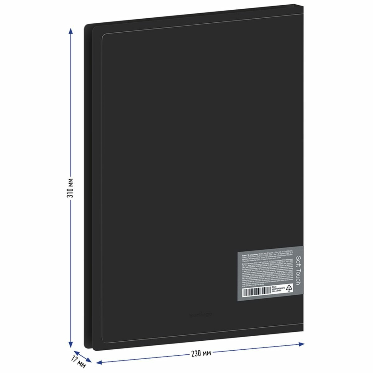 Папка с 30 вкладышами Berlingo "Soft Touch" 17 мм 700 мкм черная с внутр. карманом (DB4_30980)