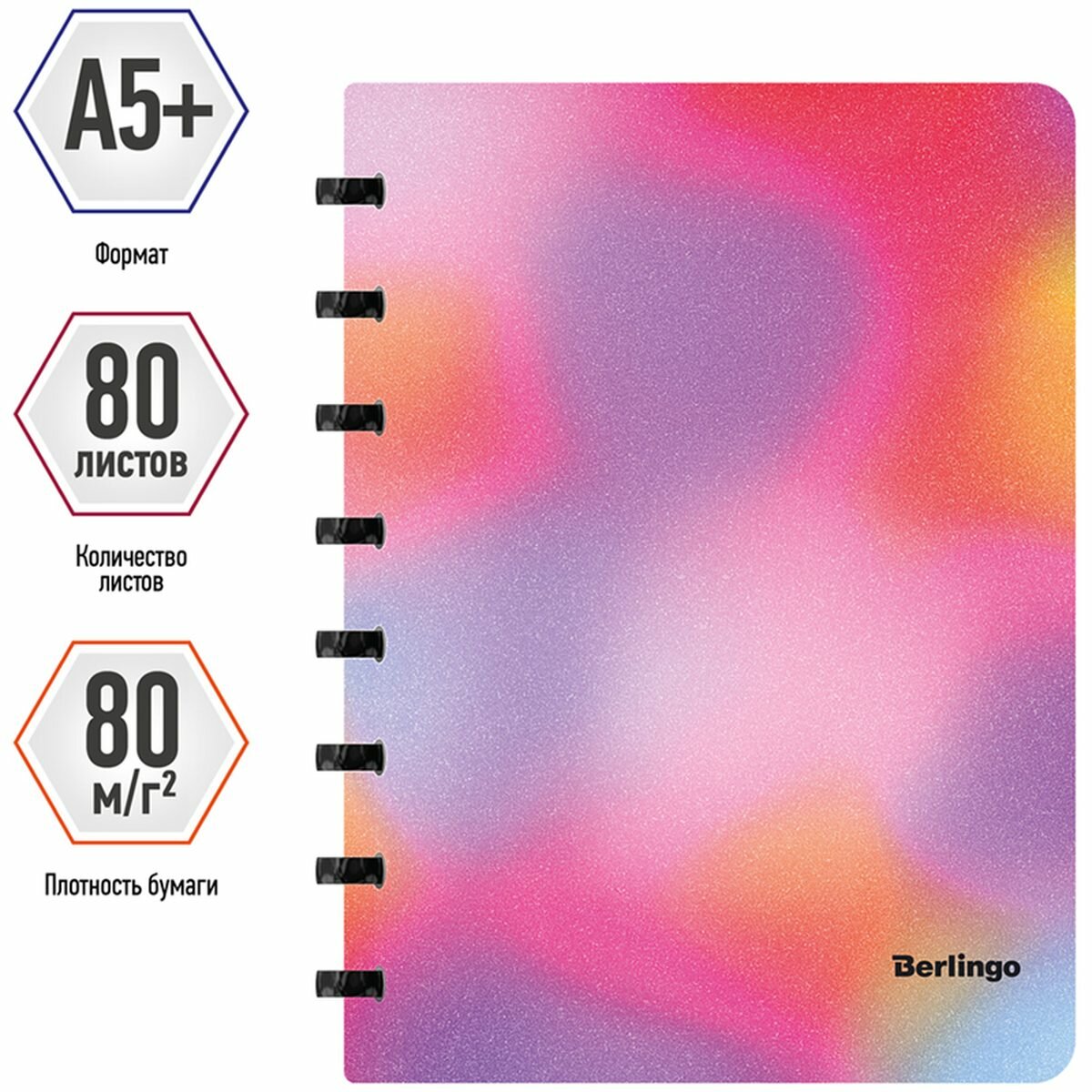 Бизнес-тетрадь Berlingo Gradient — это практичное и стильное изделие для планирования и записей формата А5+ с эффектом блесток и рисунком в стиле градиент. Эффект достигается благодаря освещению, особенно заметен при холодном LED-освещении.