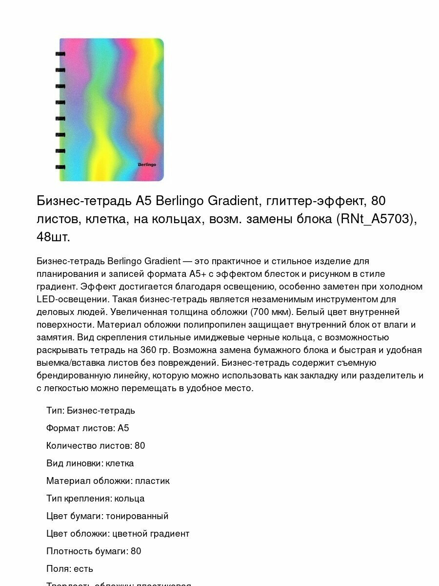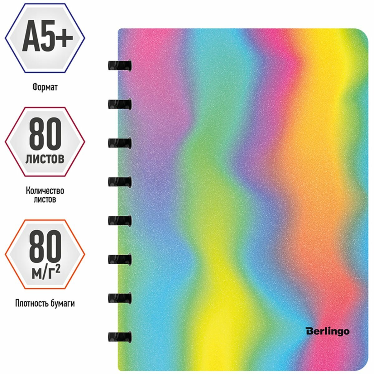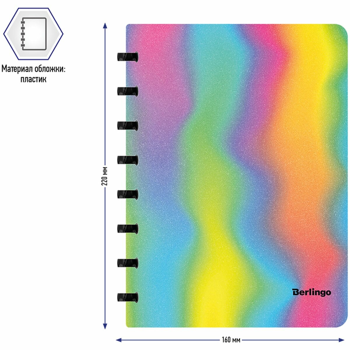 Бизнес-тетрадь Berlingo Gradient — это практичное и стильное изделие для планирования и записей формата А5+ с эффектом блесток и рисунком в стиле градиент. Эффект достигается благодаря освещению, особенно заметен при холодном LED-освещении.