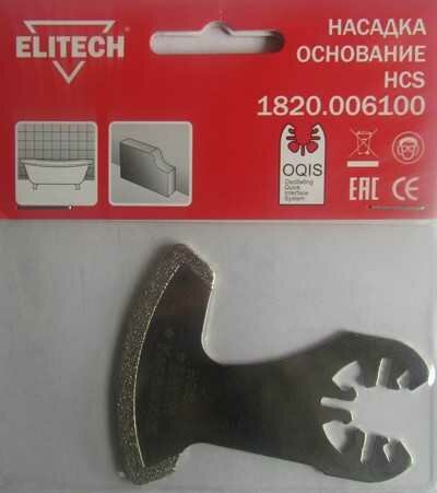 | Прочие особенности и свойства | Насадка (70 мм) Elitech 1820.006100 используется для обработки бетона и керамики. Имеет алмазное покрытие. Предназначена для многофункциональных инструментов. Тип крепления насадки - OQIS. |