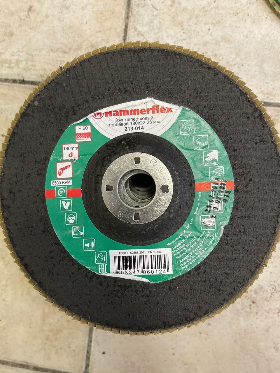 Круг лепестковый торцевой 180 Х 22 Р 60 тип 1 КЛТ Hammer Flex 213-014В основе круга тарелка из плексигласового волокна с армирующей сеткой и шлифовальный материал на прочной тканевой основе с водостойкой пропиткой, одновременно эластичный и устойчивый к растяжению и разрыву. Шлифовальный материал состоит из искусственной смолы и абразивного зерна 'Электрокорунд' (Al2O3), обладающего высокой твердостью и режущей способностью. Полимерное покрытие, снижает температуру в зоне обработки и усиливает шлифовальные свойства зерна. Антистатические свойства покрытия снижают забиваемость круга пылью, предотвращают засаливание абразива и увеличивают срок его службы. Круг универсален и может применяться для работ по металлу, древесине и пластику. Подходит для обработки поверхностей с разной геометрией. Предназначен для использования на УШМ(угловая шлифовальная машина).