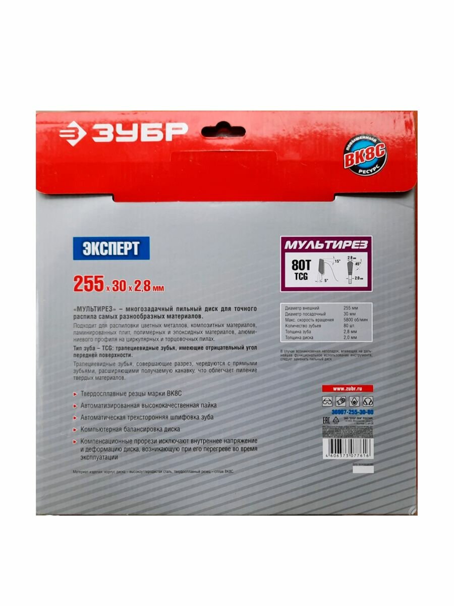 Диск пильный твердосплавный ЗУБР Точный-МУЛЬТИ рез 255х30