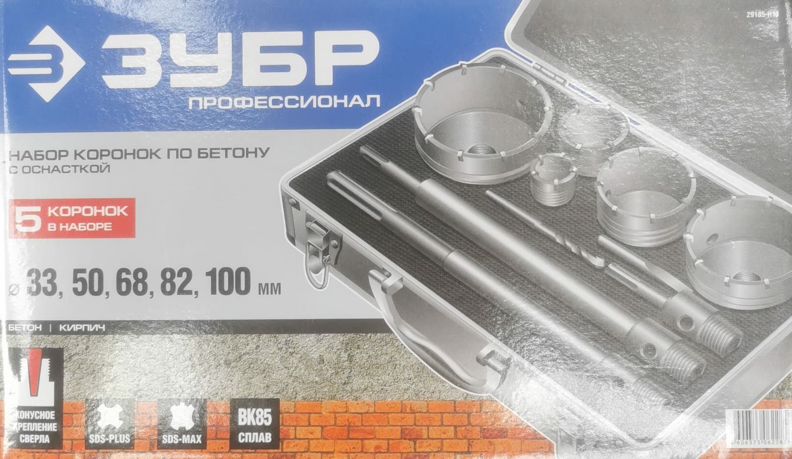 | Наименование модели | набор буровых коронок, 5шт/33,50,68,82,100мм, с державками SDS-PLUS и SDS-MAX, 10предметов |