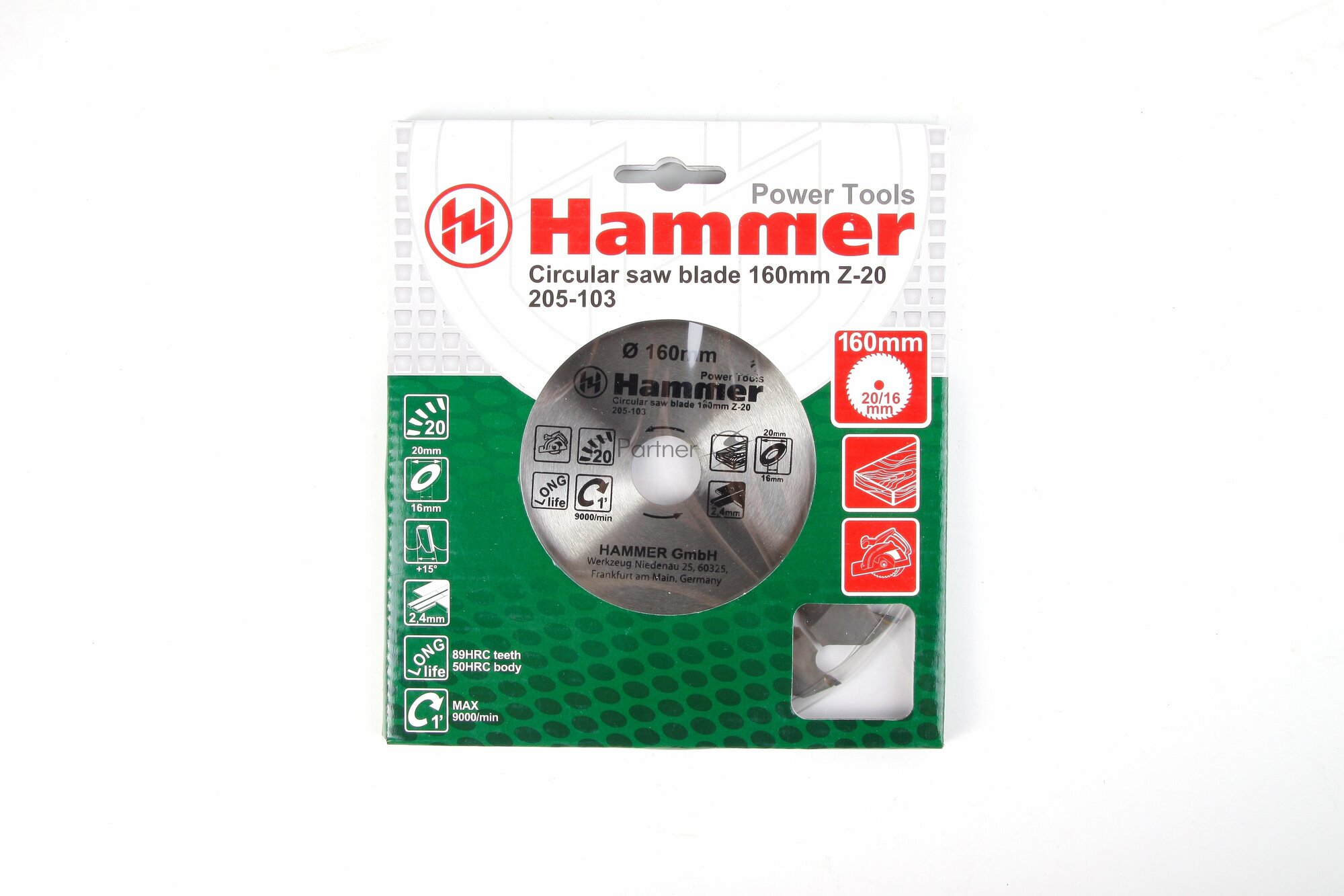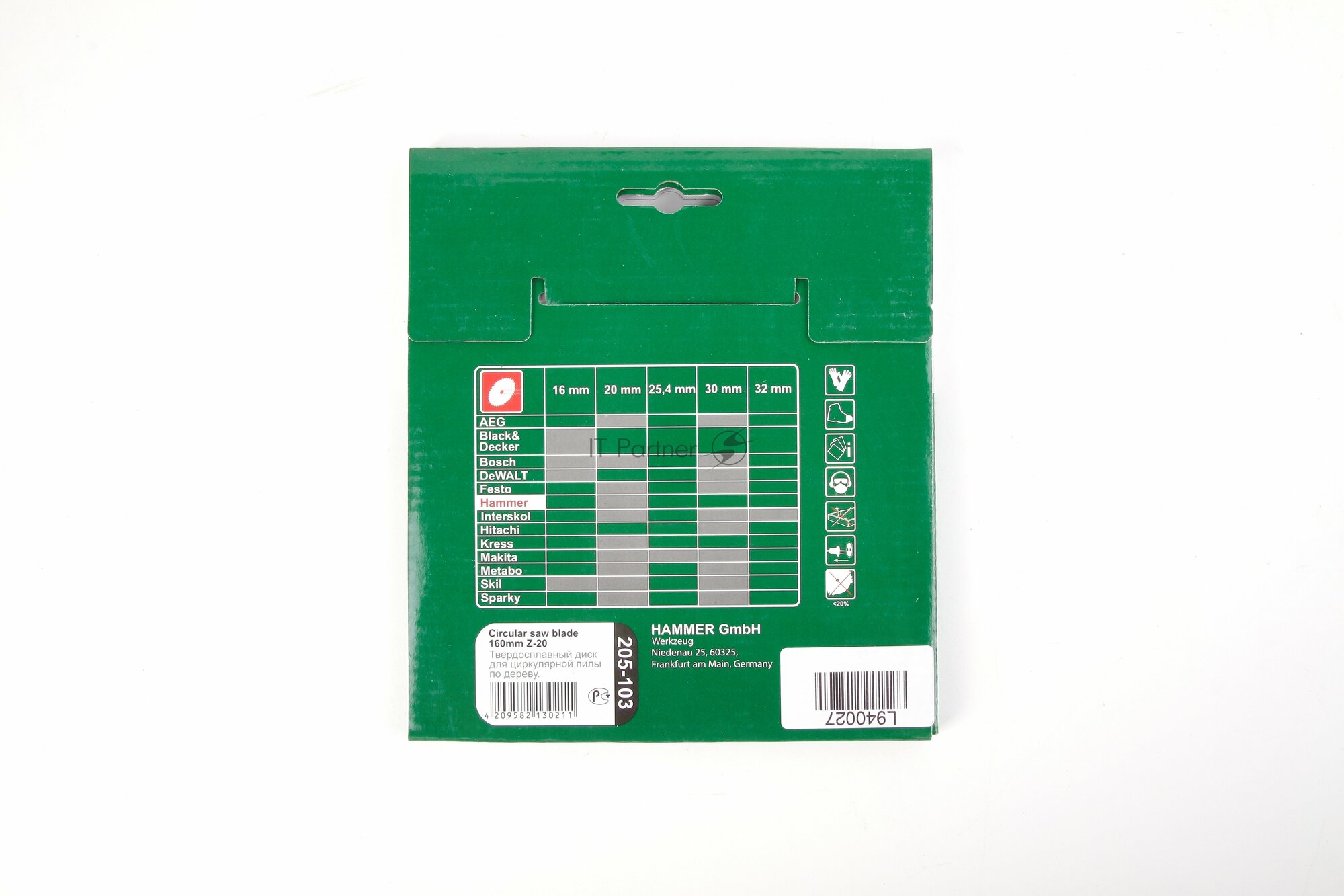 | Название на английском | Circular Saw Blade Hammer Flex 205-103 CSB WD 160мм*20*20/16мм wood |
