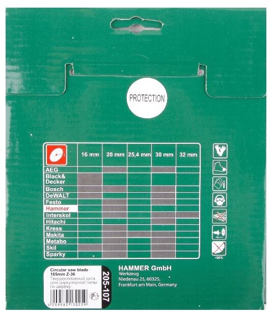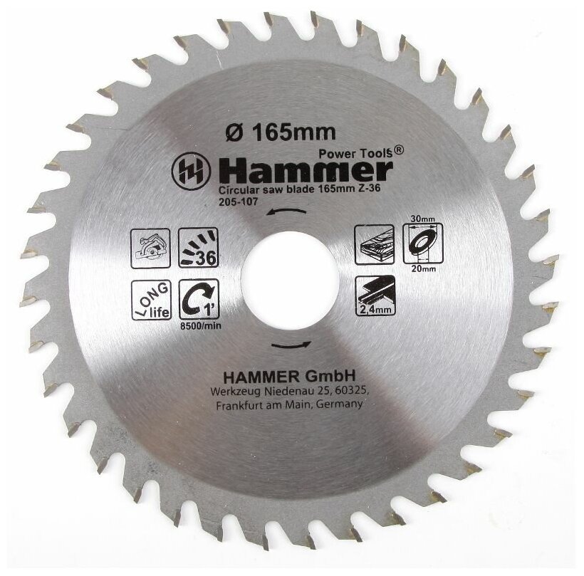 | Название на английском | Circular Saw Blade Hammer Flex 205-107 CSB WD 165мм*36*30/20мм wood |
