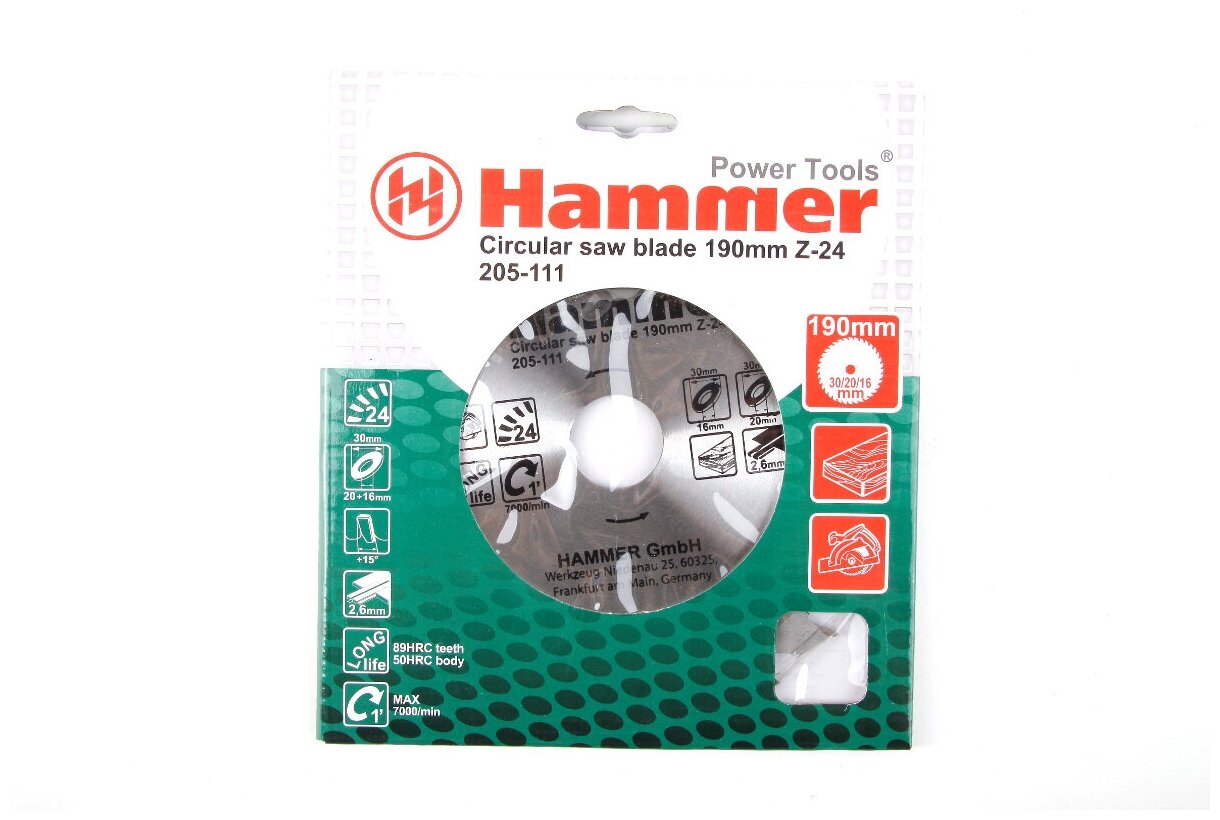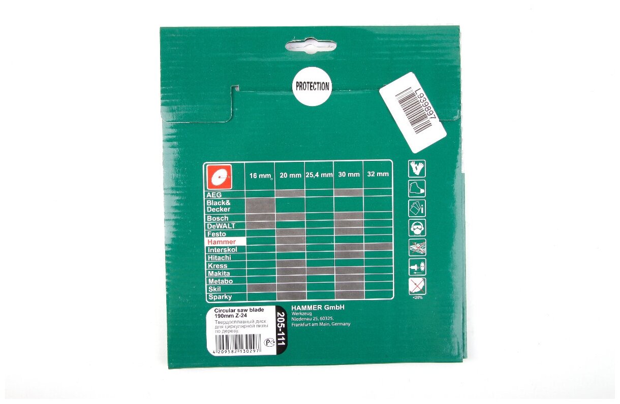 | Название на английском | Circular Saw Blade Hammer Flex 205-111 CSB WD 190мм*24*30/20/16мм wood |