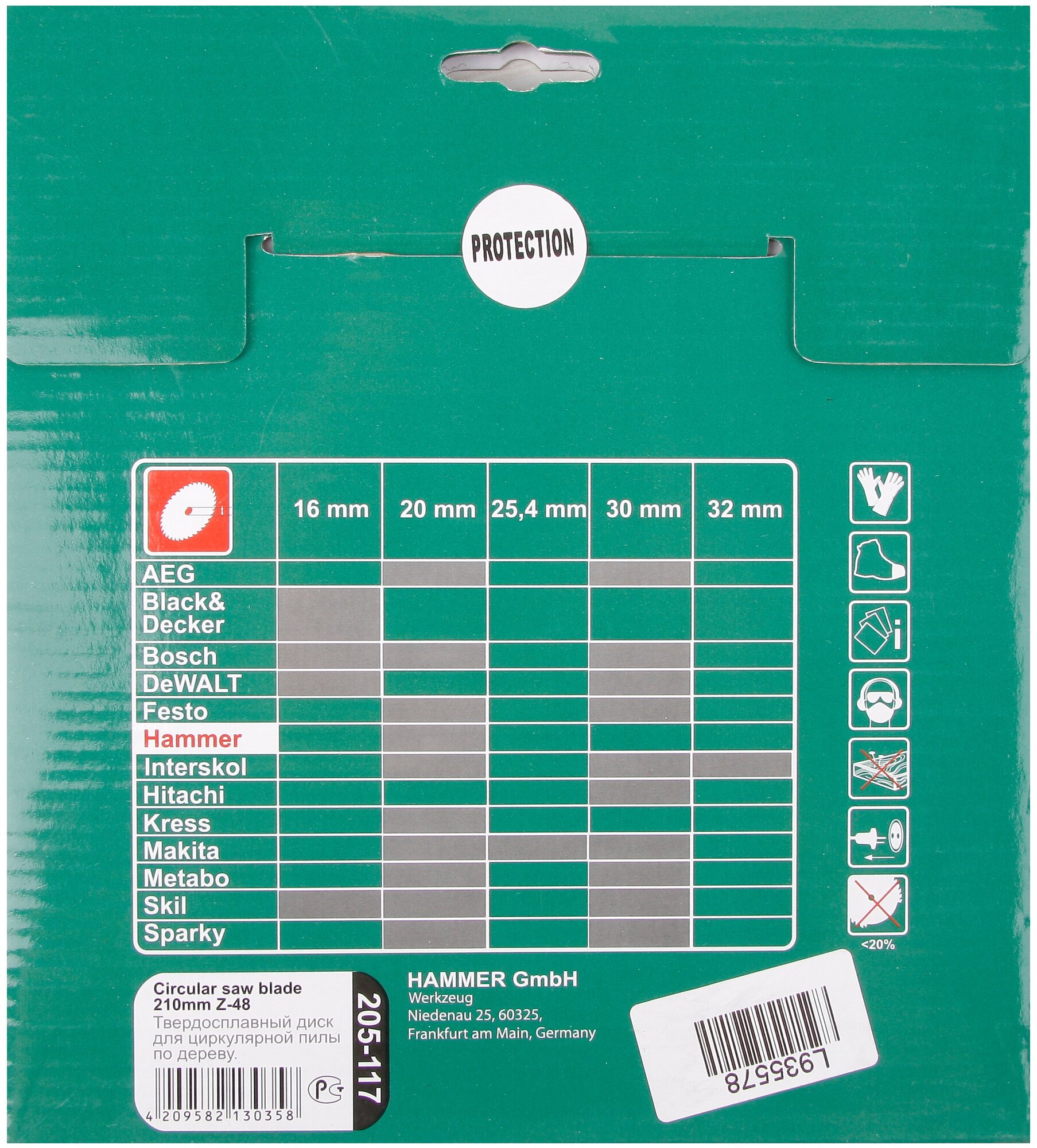 | Название на английском | Circular Saw Blade Hammer Flex 205-117 CSB WD 210мм*48*30/20мм wood |