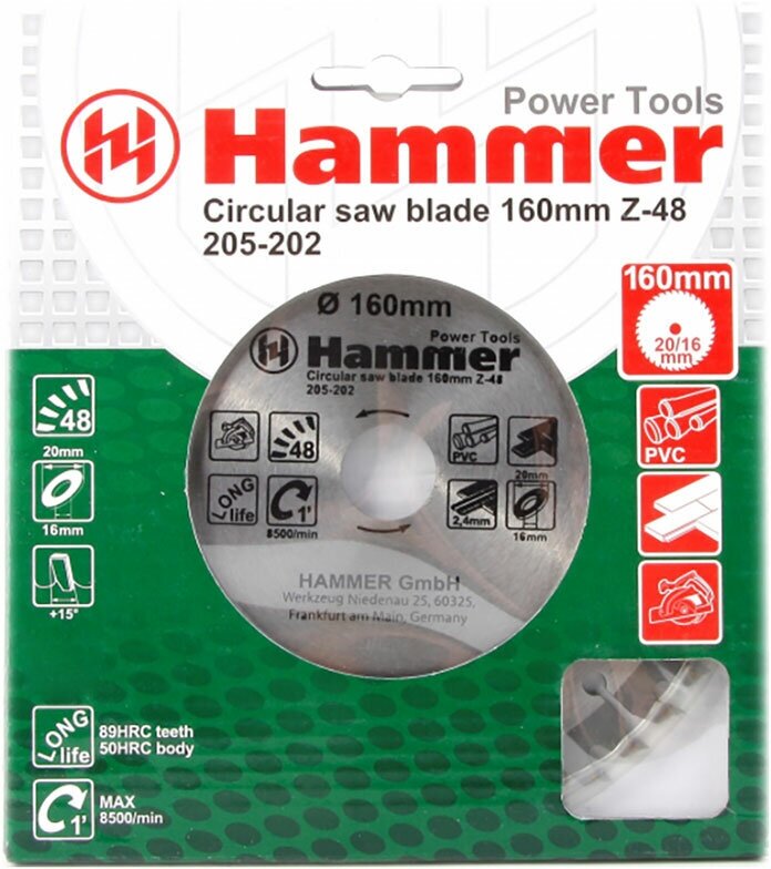 | Название на английском | Circular Saw Blade Hammer Flex 205-202 CSB PL 160мм*48*20/16мм laminate |