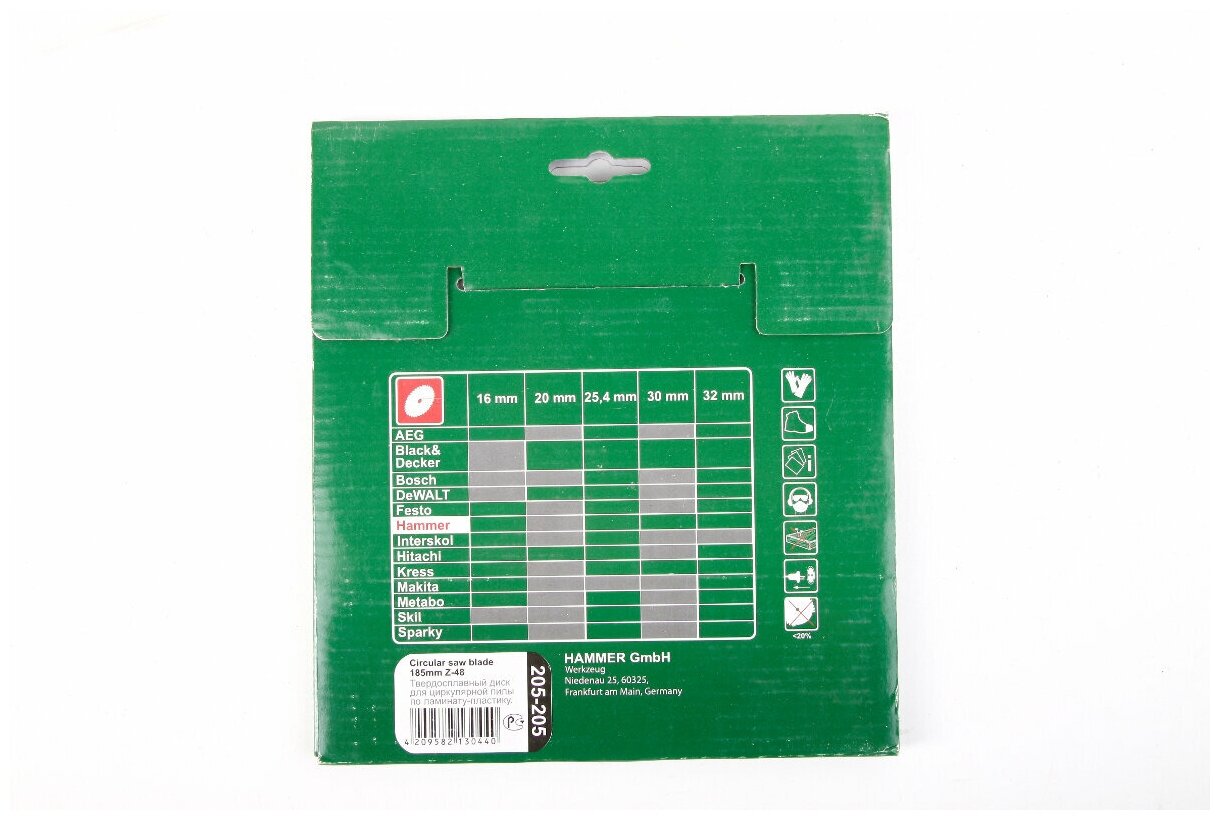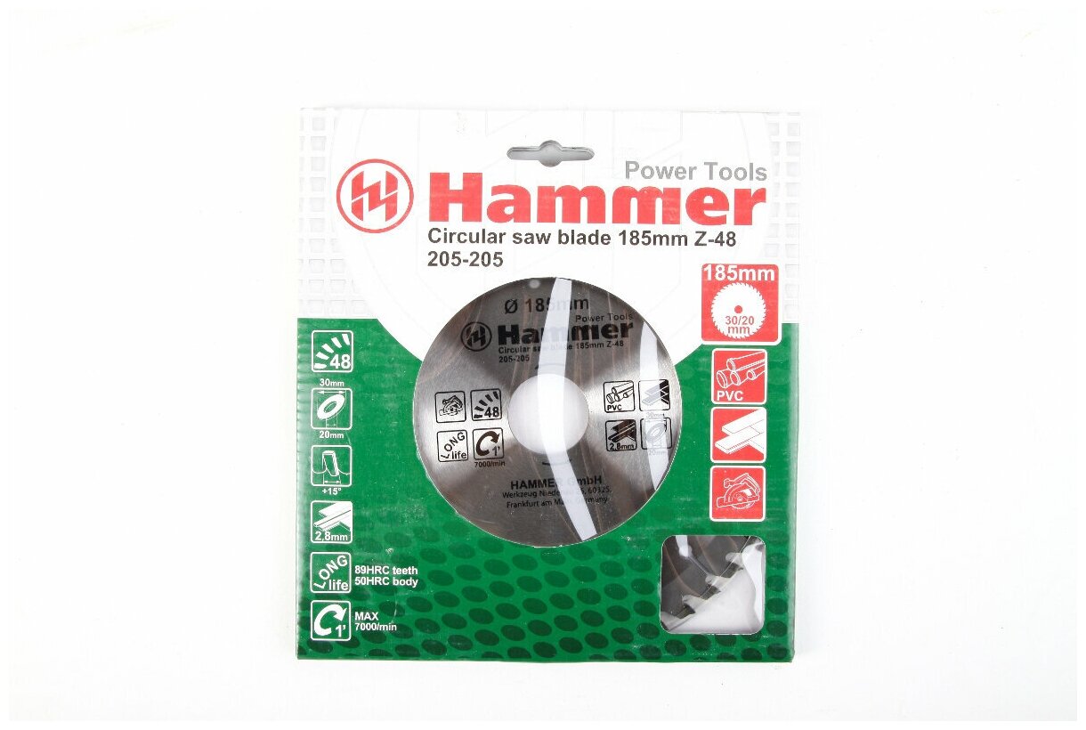 | Название на английском | Circular Saw Blade Hammer Flex 205-205 CSB PL 185мм*48*30/20мм laminate |