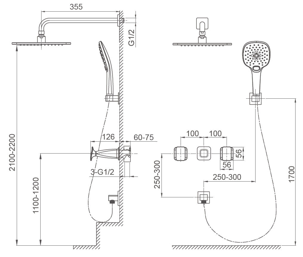 | Габариты верхнего душа | 254 |
