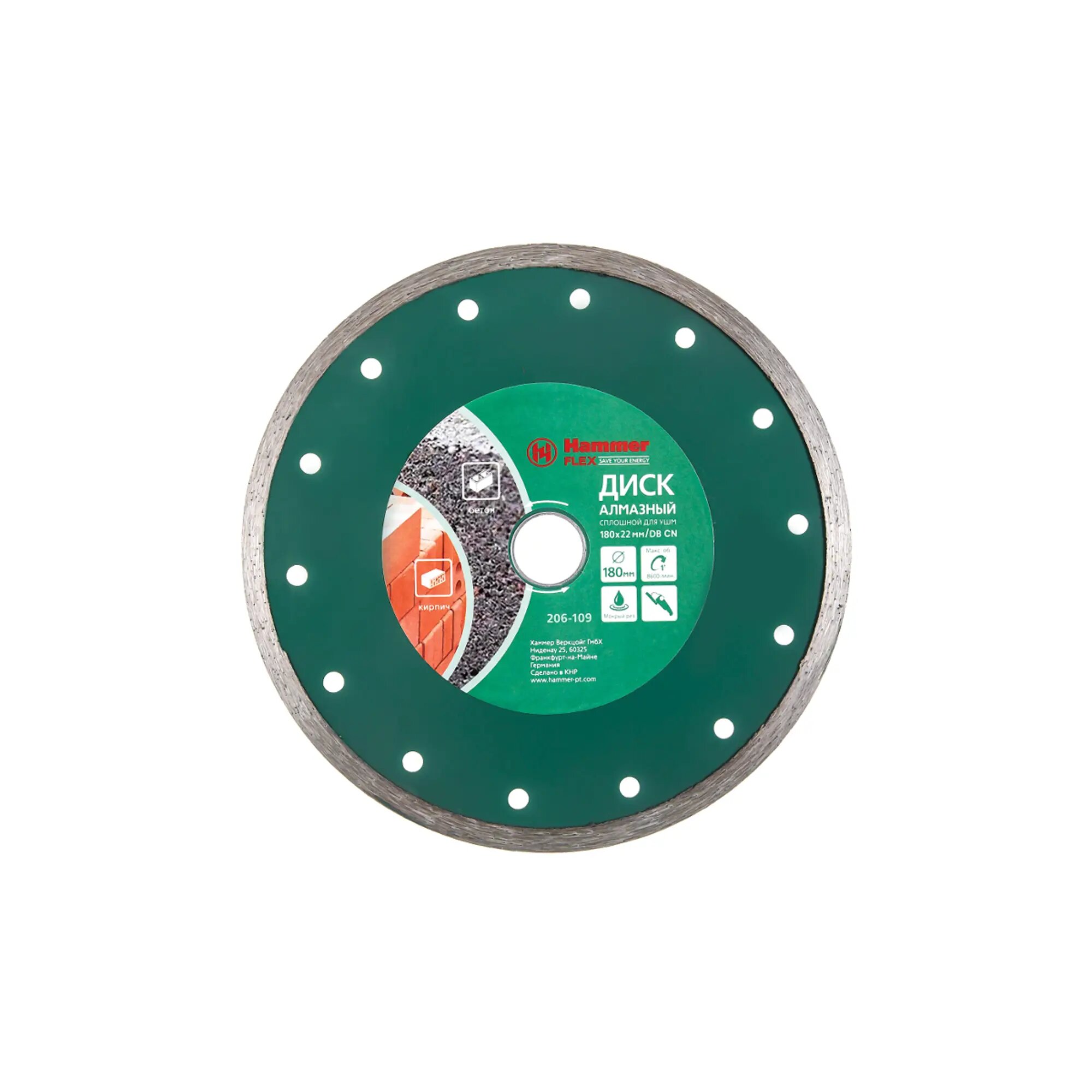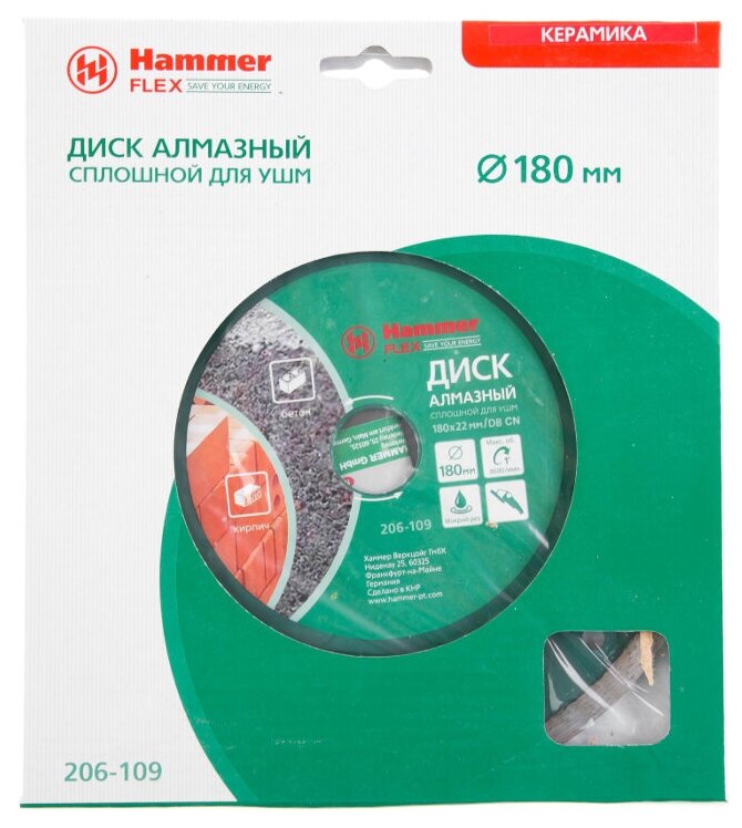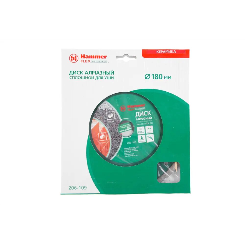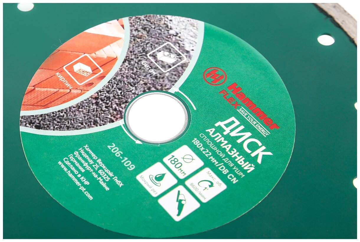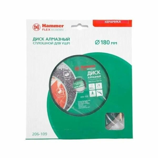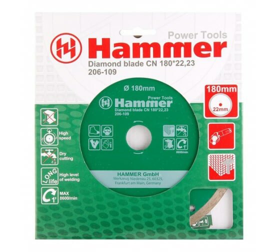 | Название на английском | Diamond disc Hammer Flex 206-109 DB CN 180*22мм solid |
