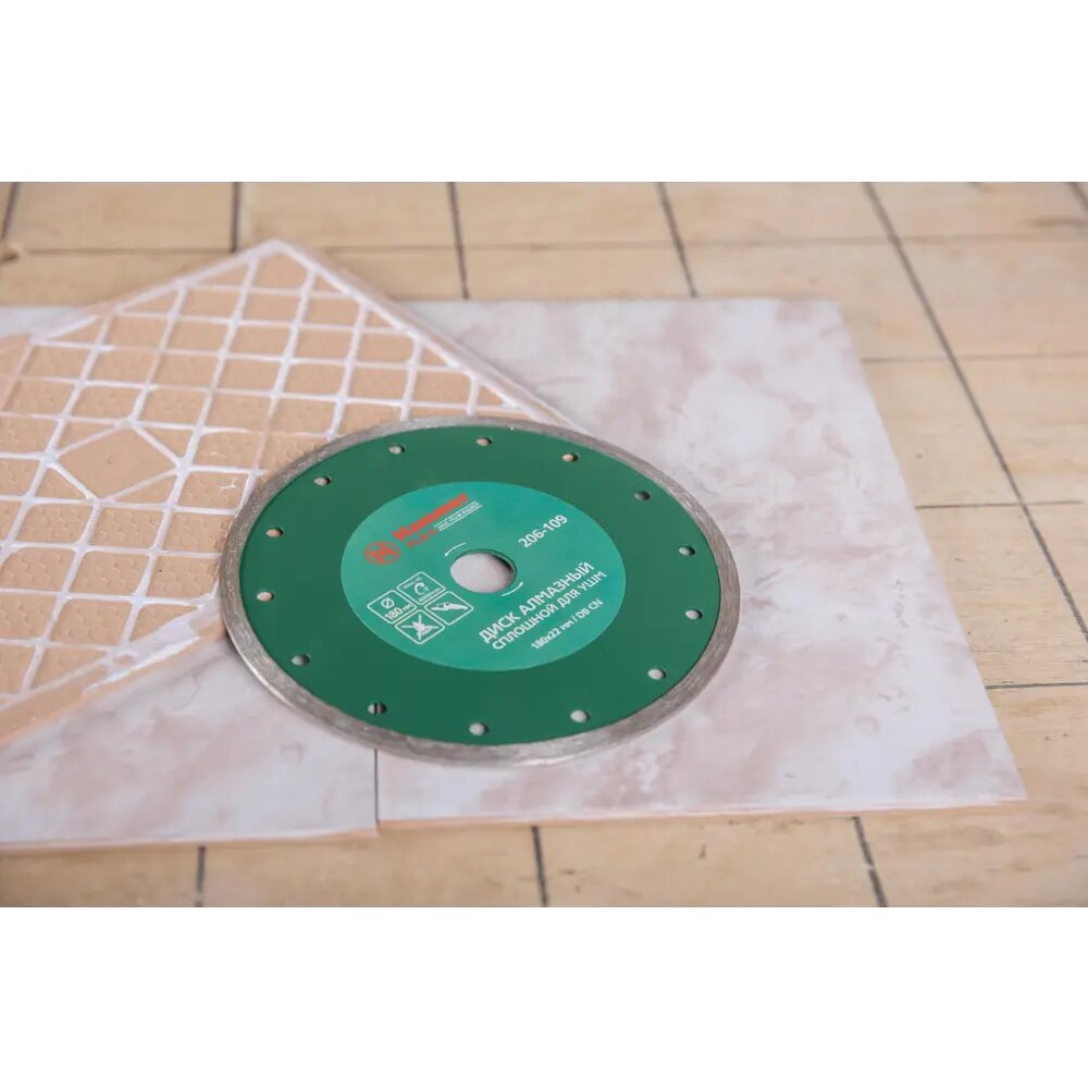Сплошные диски предназначены для реза тонких и твердых материалов, например, керамической плитки. Обеспечивают чистый рез и отсутствие сколов. Конструкция диска предполагает охлаждение водой. — Повышенная концентрация технических алмазов в кромке обеспечивает высокую режущую способность диска