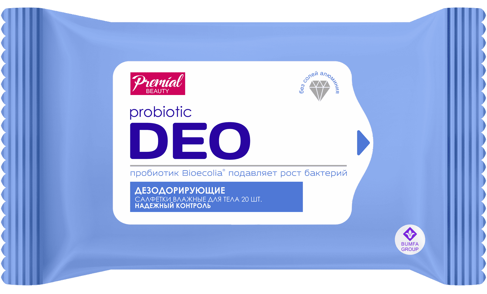 Салфетки влажные Premial Дезодорирующие 20 шт