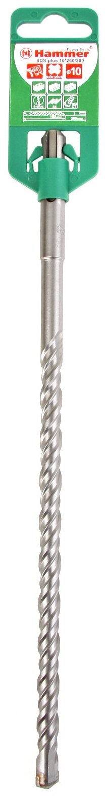 Бур 10 x 260 мм SDS-Plus Hammer FlexСтандарт бура DIN 8035. Высококачественная инструментальная сталь 40Cr. Является оснасткой для перфораторов и используется для ударного сверления отверстий в твердых материалах, таких как бетон, камень, кирпич. Специальная форма одинарной спирали способствует эффективному удалению сверлильной пыли из отверстия и уменьшает нагрев бура во время работы. Наконечник оснащен пластиной из твердого сплава, что гарантирует высокую прочность, износостойкость и длительный срок эксплуатации оснастки. Предназначен для перфораторов с системой крепления SDS-plus.