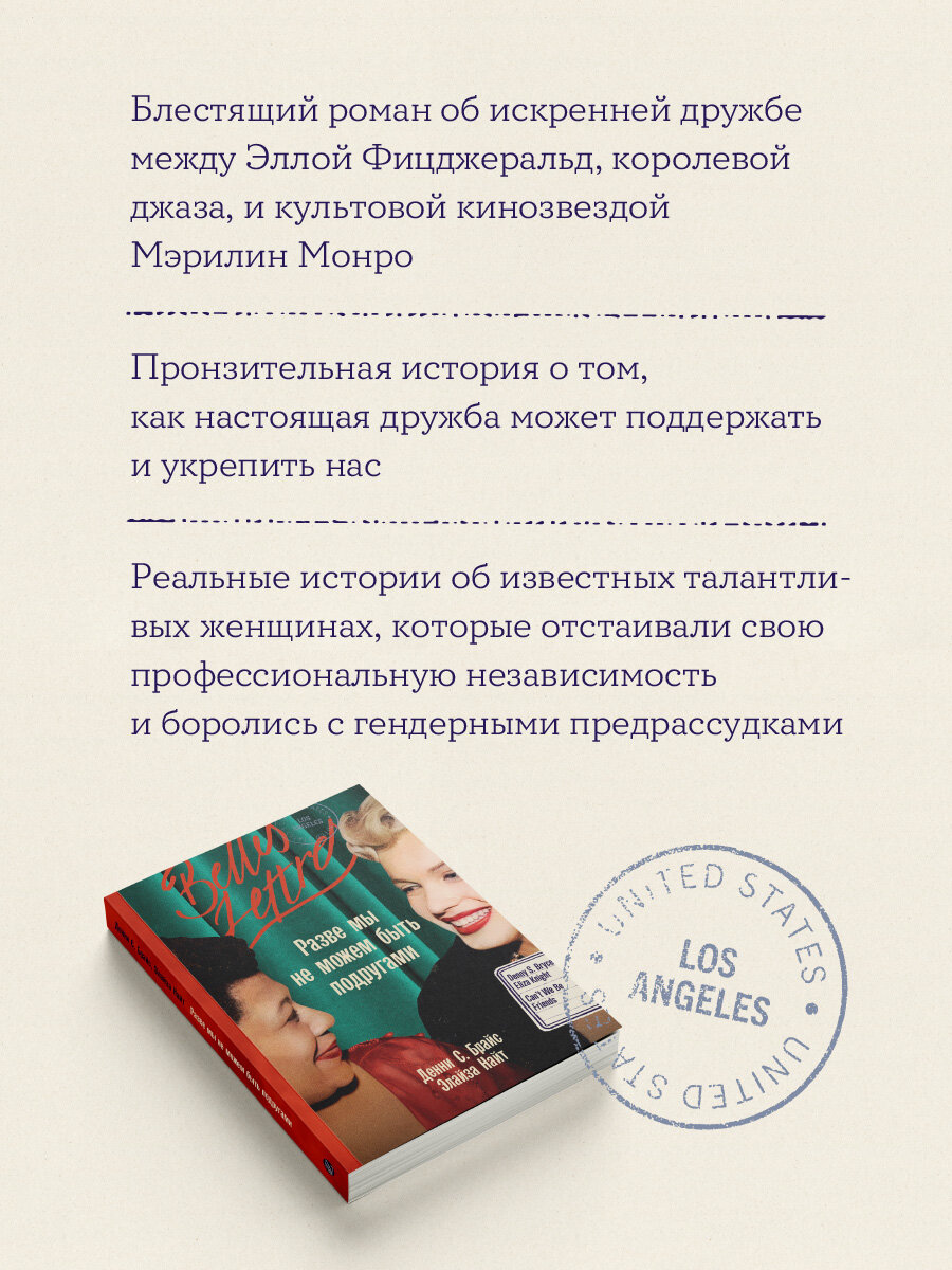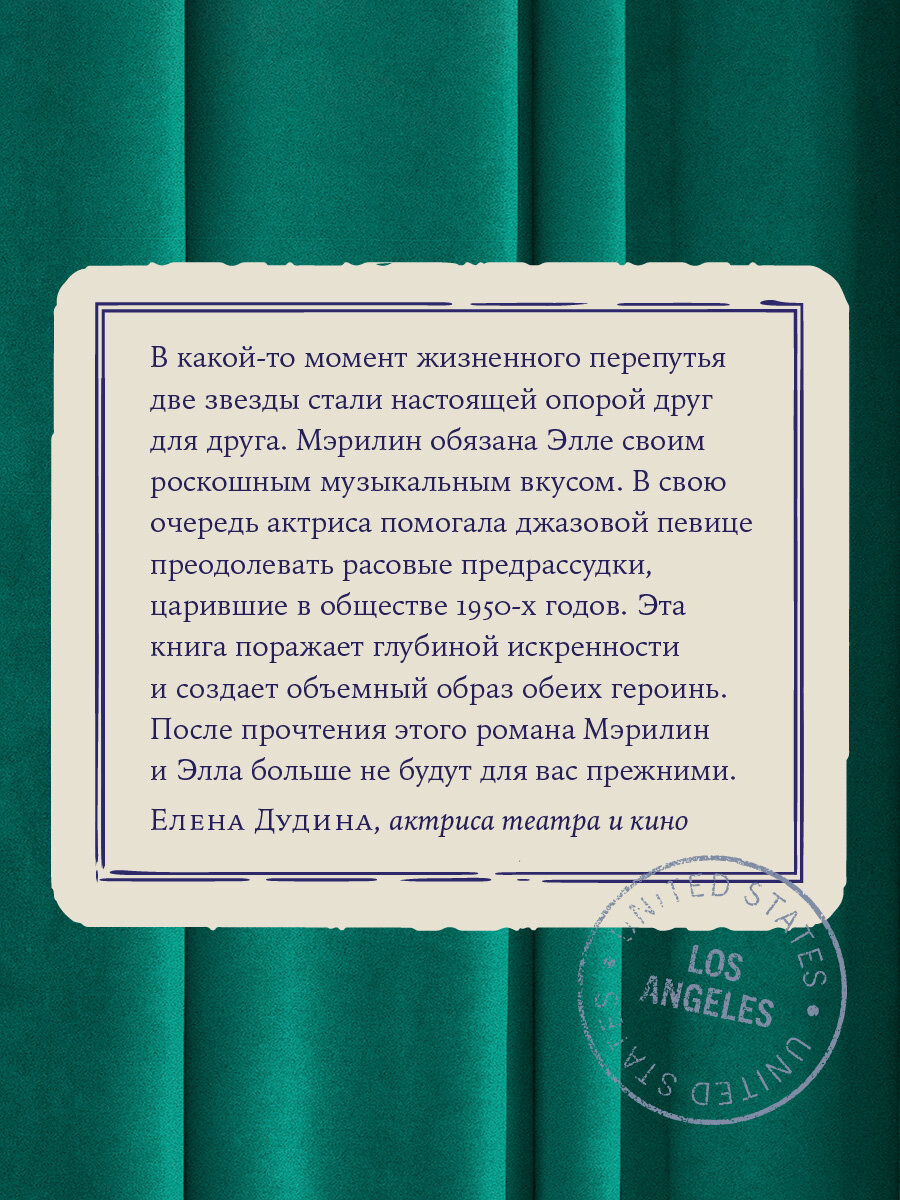 Этот роман раскрывает и отмечает удивительную связь Мэрилин Монро и Эллы Фитцджеральд на протяжении десяти лет и служит пронзительным напоминанием о том, как настоящая дружба может преодолеть различия, чтобы поддержать и укрепить нас, когда мы переживаем душевные муки и добиваемся большого успеха.
